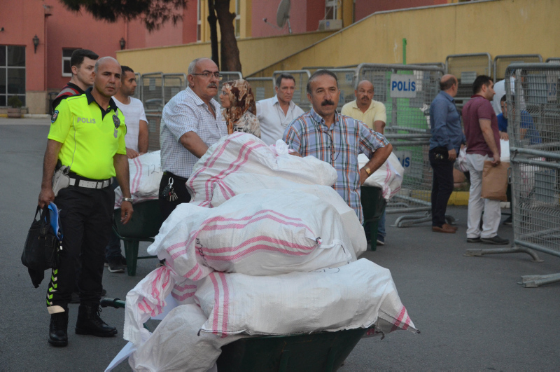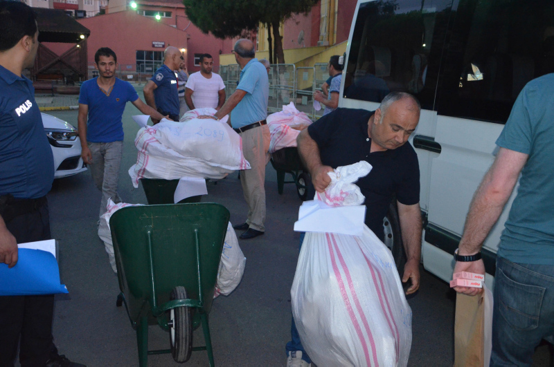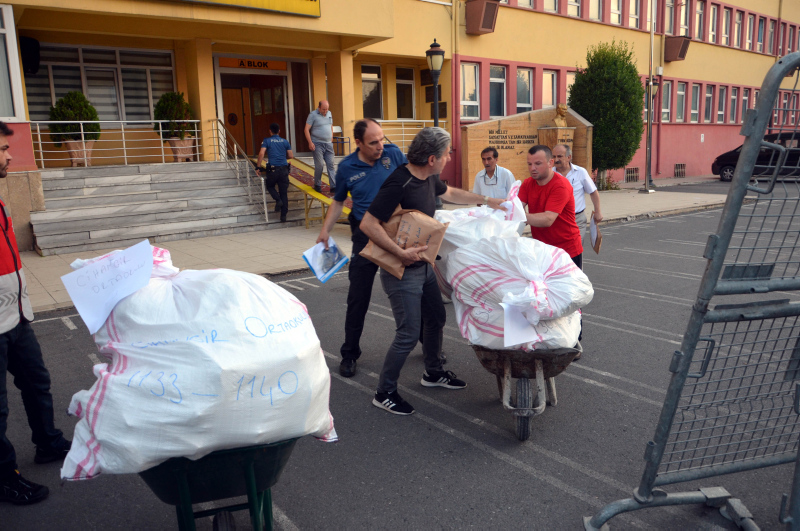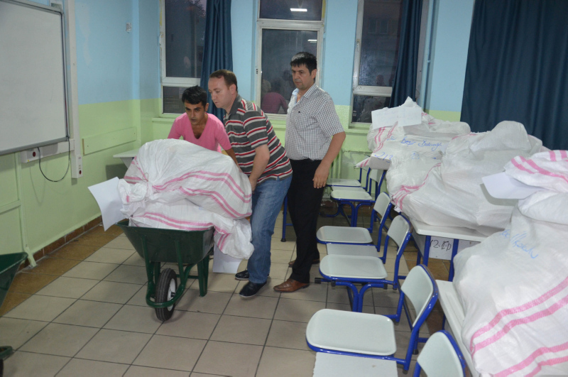 34 okul yöneticisinin teslim aldığı oy torbaları okullara götürülerek müdür odalarına götürüldü. Sandık kurulu başkanlarına teslim edilecek oy torbaları seçim artından oy dağılımının tespit edilmesi ile birlikte yine polis korumasında ilçe seçim kuruluna taşınacak.