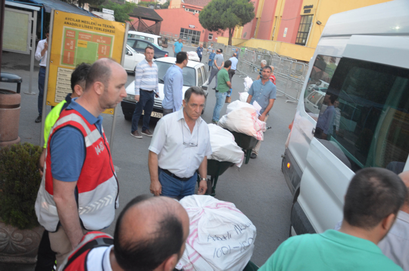 İstanbul'daki 39 ilçede olduğu gibi Avcılar'daki İlçe Seçim Kurulu'nda 34 ayrı bina için mühürlenen 877 oy çuvalı saat 04.30'dan itibaren gelen görevlilere saat 05.00'te teslim edildi.