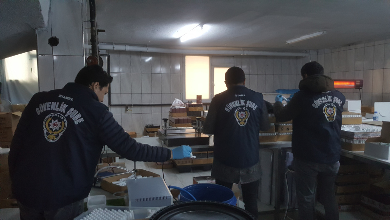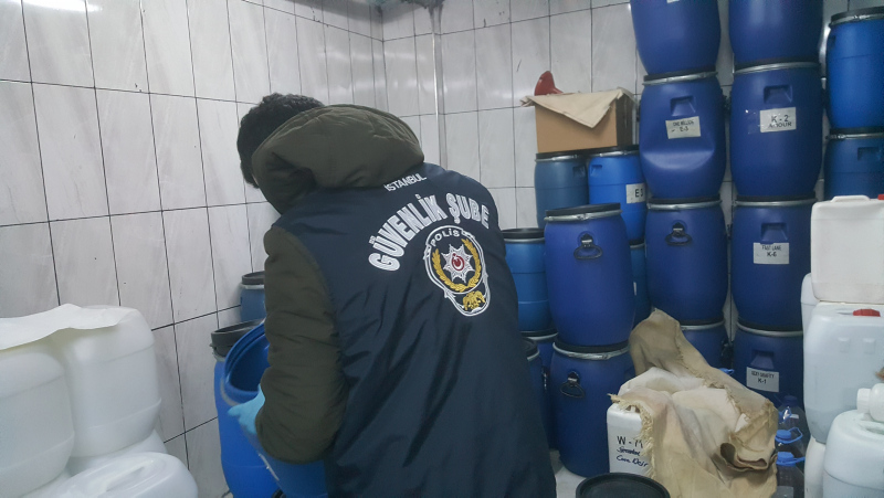 İstanbul Güvenlik Şube Müdürlüğü ekipleri Esenyurt'ta bir adreste sahte dezenfektan üretimi yapıldığını belirledi.