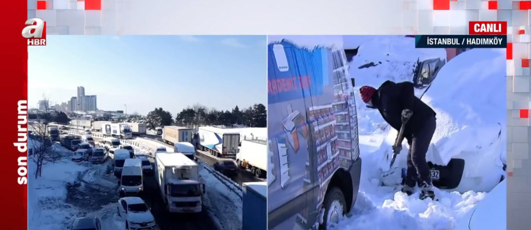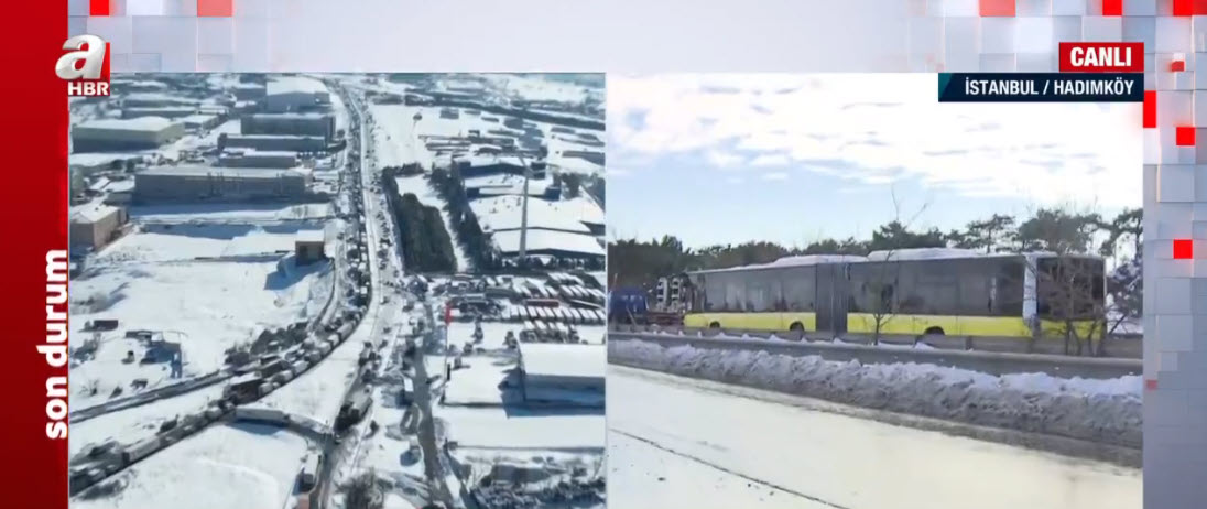 İstanbul'da hayatı felç eden kar yağışının ardından Esenyurt gişeler mevki Tem bağlantı yolunda buzlanma ve yol kenarına park edilmiş araçlar nedeniyle trafik oluştu. Hadımköy istikametinde oluşan trafik yoğunluğu havadan görüntülendi. İBB ise günlerdir bölgeye müdahale etmedi. Bakanlık bunun üzerine devreye girdi. Öte yandan İstanbul Valisi Ali Yerlikaya'dan son dakika açıklaması geldi. A Haber muhabiri Aslı Bilger Kutludağ, bölgeden son gelişmeleri aktardı.