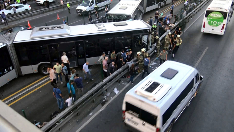İstanbul Avcılar'da 4 metrobüsün çarpıştığı kaza sonucu 99 kişi yaralandı. Kaza nedeniyle metrobüs seferleri Avrupa Yakası'nda çift yönlü durduruldu. Üst geçitlerde yoğunluk yaşandı ve D-100 kara yolunda da trafik yoğunluğu meydana geldi.