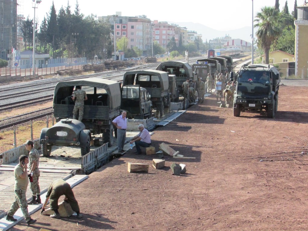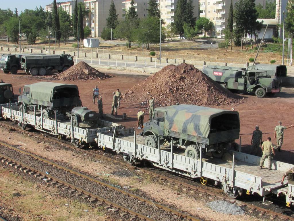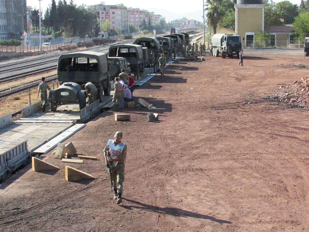 İstanbul'un Maltepe ilçesindeki General Nurettin Baransel Kışlası'ndan trenle gönderilen Zırhlı Personel Taşıyıcılardan (ZPT) oluşan 38 araç, sabah saatlerinde İslahiye Tren İstasyonuna ulaştı.