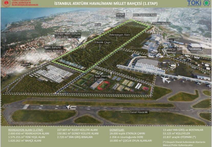 Son dakika haberine göre: Atatürk Havalimanı'nın yerine yapılacak olan ve tamamlandığında dünyanın en büyük yeşil alanlarından biri haline gelecek olan millet bahçesinde ilk fidan dikimi, Başkan Recep Tayyip Erdoğan'ın katılımıyla kısa süre içerisinde yapılacak. İstanbul'un yeni millet bahçesi içerisinde neler yer alacak? İşte Millet Bahçesi'nin İstanbul'a kazandıracakları.