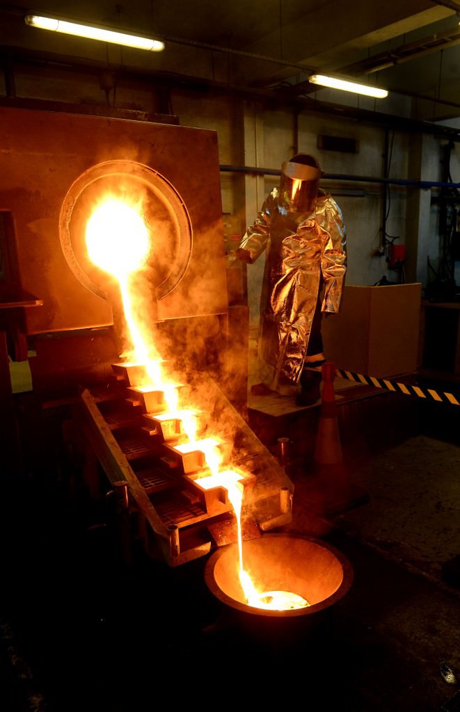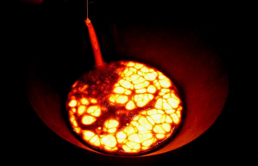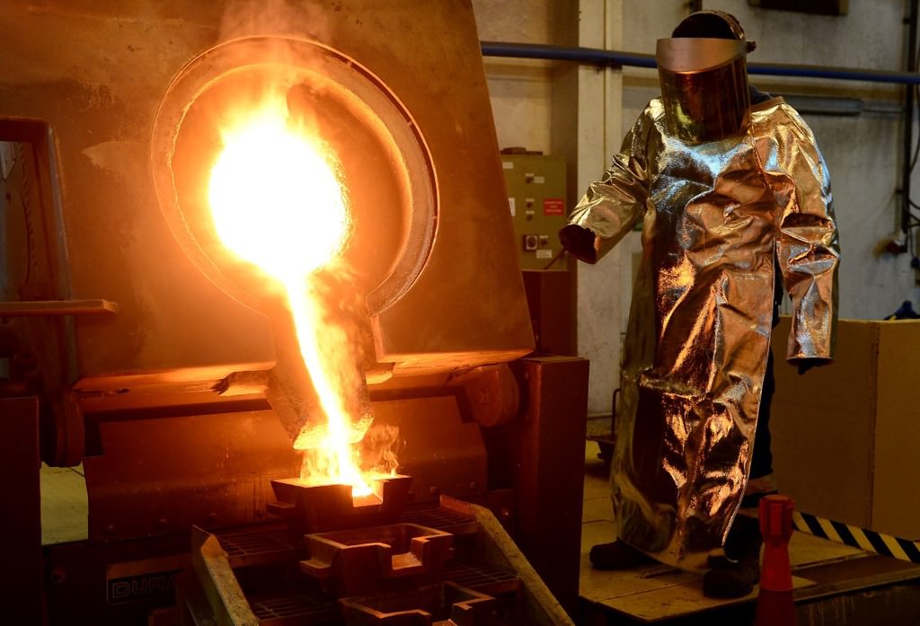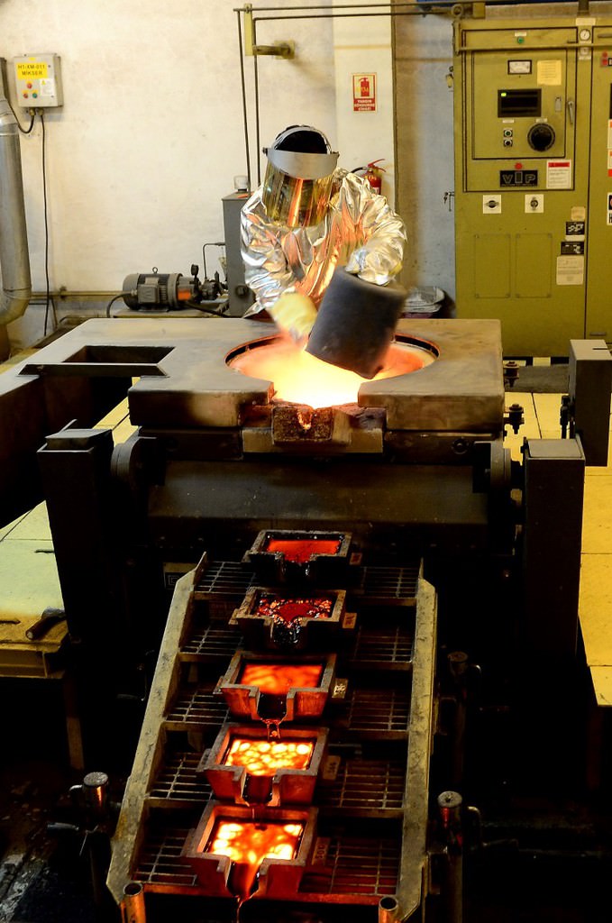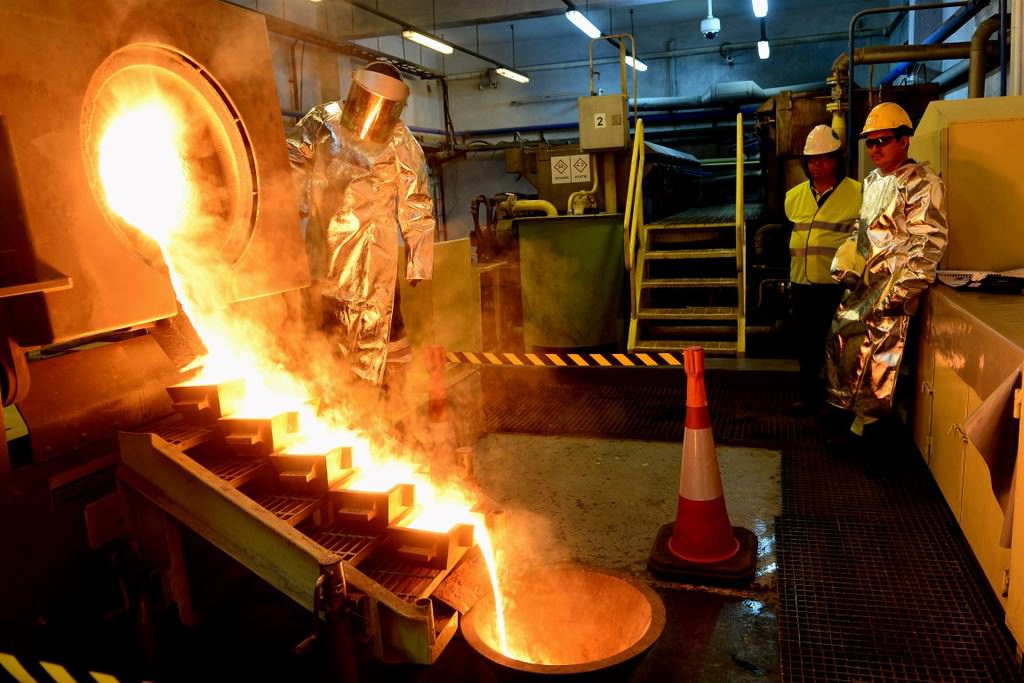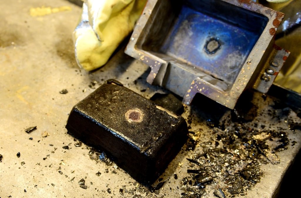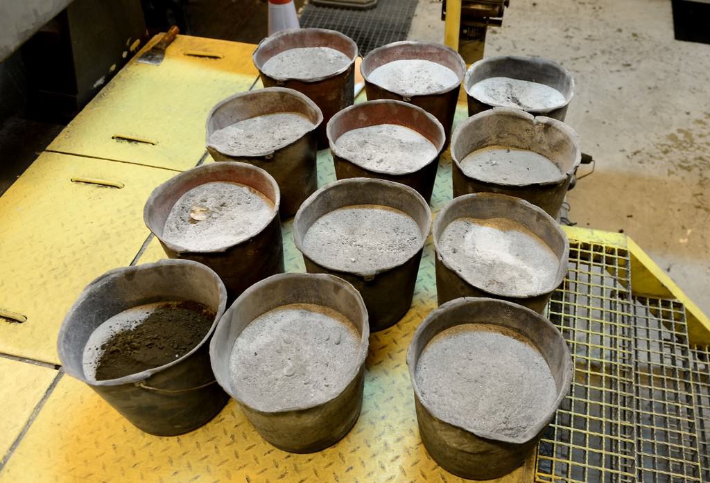 Katotda toplanan toz altın yaklaşık 1100 santigrat derecedeki potalarda eritilerek dökümü gerçekleştiriliyor.