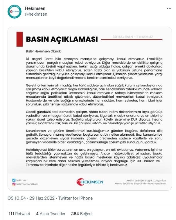 Başkanı FETÖ iltisaklı olan HEKİMSEN isimli oluşum da bu olay üzerinden kendisine rol devşirerek yayımladığı basın açıklamasında herkesi istifaya ve isyana çağırdı.