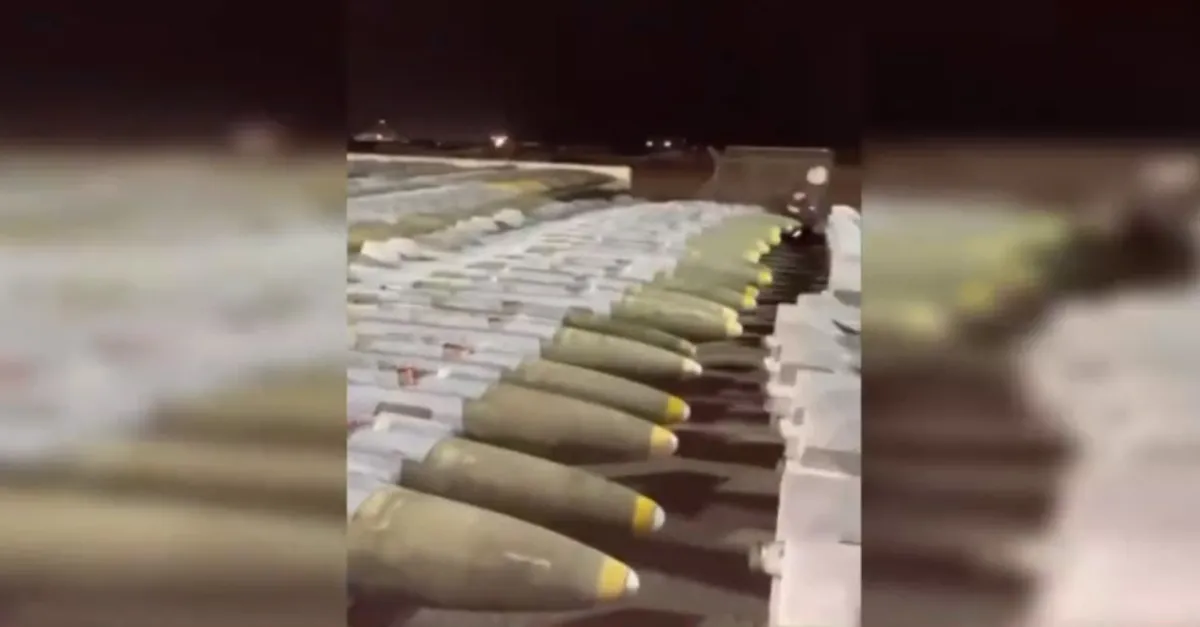 İsrail hava Kuvvetleri Üssü'ne getirilen ABD mühimmatları savaş uçaklarına yüklenmeye hazır olarak bekletiliyor.