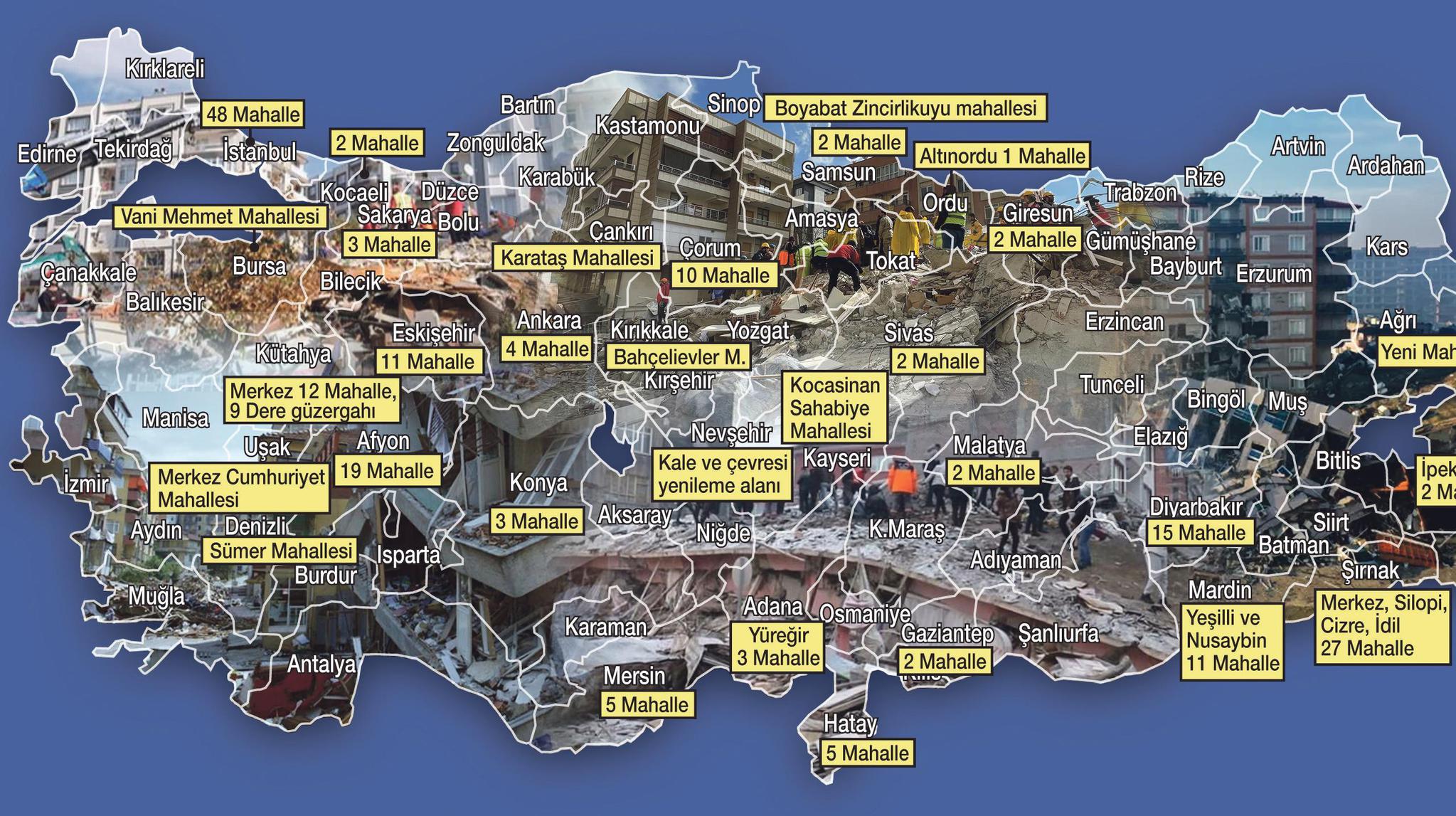 Türkiye'de son 20 yılda yapılmak istenen birçok kentsel dönüşüm hamlesi, CHP, İYİ Parti, HDP ve yandaşları tarafından engellendi. Muhalefet 32 ilde riskli alanların dönüştürülmesi için hazırlanan 481 projenin 119'una dava açtı. Türkiye bu yıkım kafasının sorumsuzluğunun bedelini ağır ödedi.