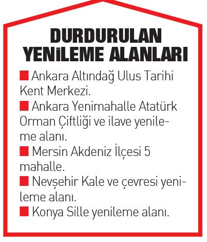 SABAH, 32 ilde mahkeme kararıyla durdurulan riski alan, kentsel dönüşüm ve gelişim projeleri ile yenileme alanlarının listesine ulaştı. Buna göre Bakanlar Kurulu tarafından ilan edilen 279 riskli alan kararının 81'i, 21 yenileme alanının 4'ü, 181 Kentsel Dönüşüm ve Gelişim Proje alanından da 34'ü açılan davalarla engellendi. Engellenen projeler ve riskli alanlar arasında, asrın felaketinin yaşandığı Adana, Diyarbakır, Hatay ve Malatya'daki riskli alan kararları ile İstanbul'un 9 ilçesindeki 48 mahalledeki dönüşüm projeleri de yer aldı.