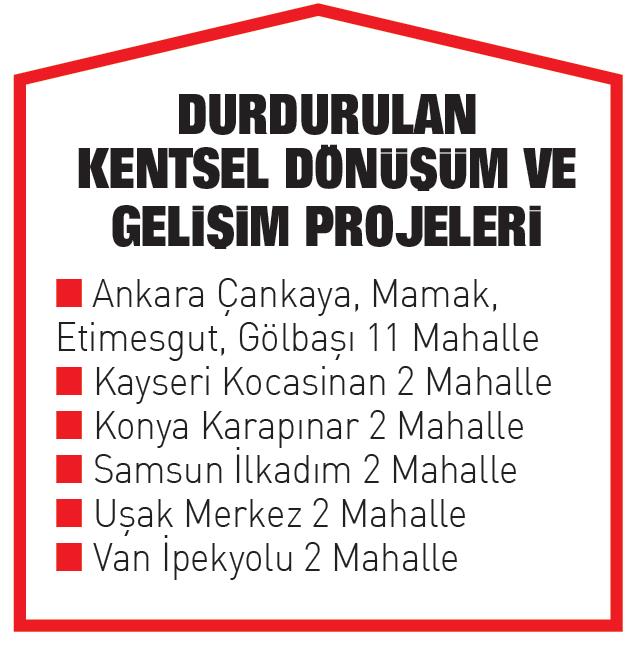 Çevre ve Şehircilik Bakanlığı tarafından yeni imar planları hazırlandı. Ancak, CHP'nin başını çektiği muhalefet partileri, bu dönüşüm çalışmalarına destek yerine köstek oldu. 32 il için hazırlanan riski alan, kentsel dönüşüm ve yenileme alanları projeleri CHP, İyi Parti, HDP'nin yanı sıra muhalefetle eşgüdümlü hareket eden Odalar tarafından yargıya taşındı.