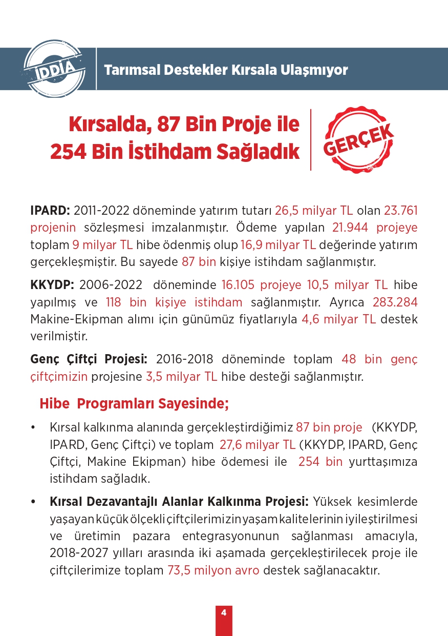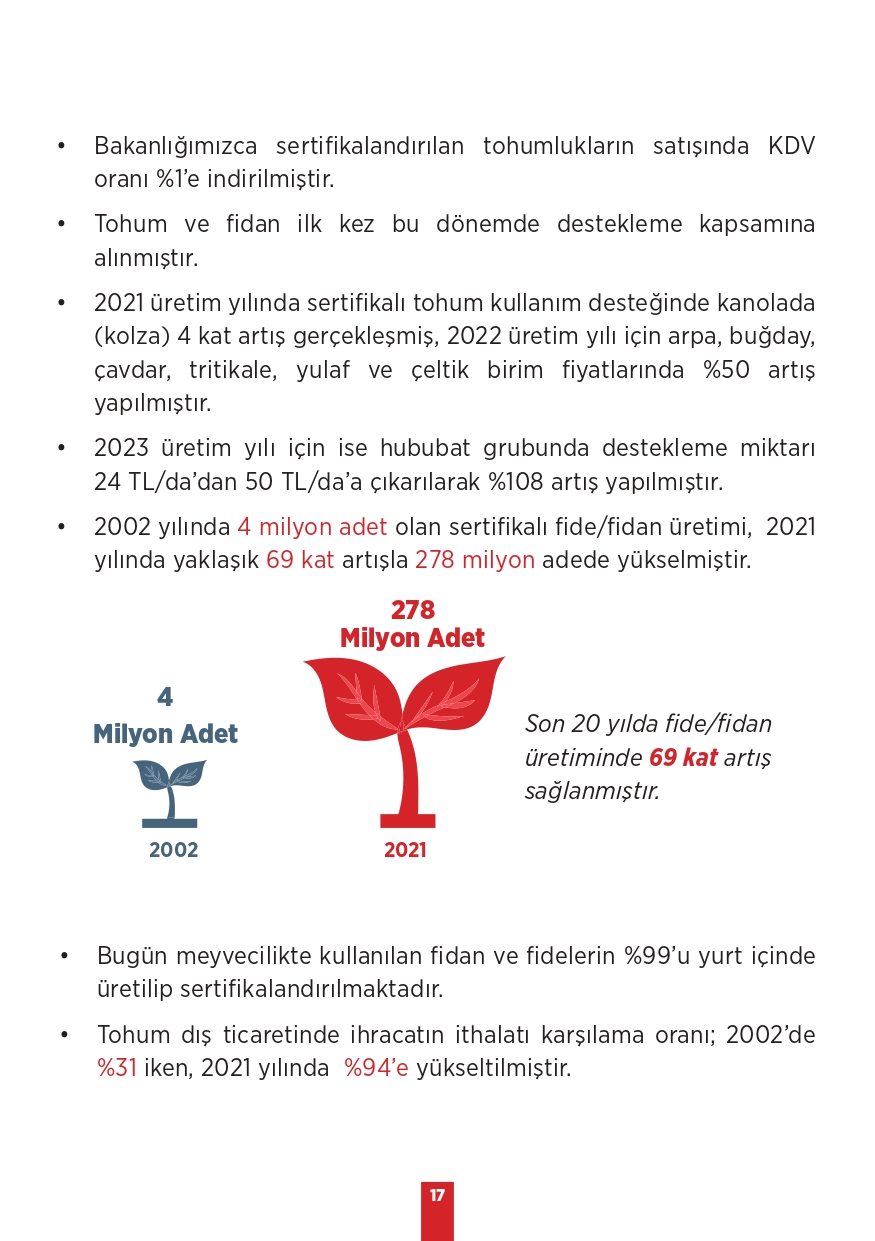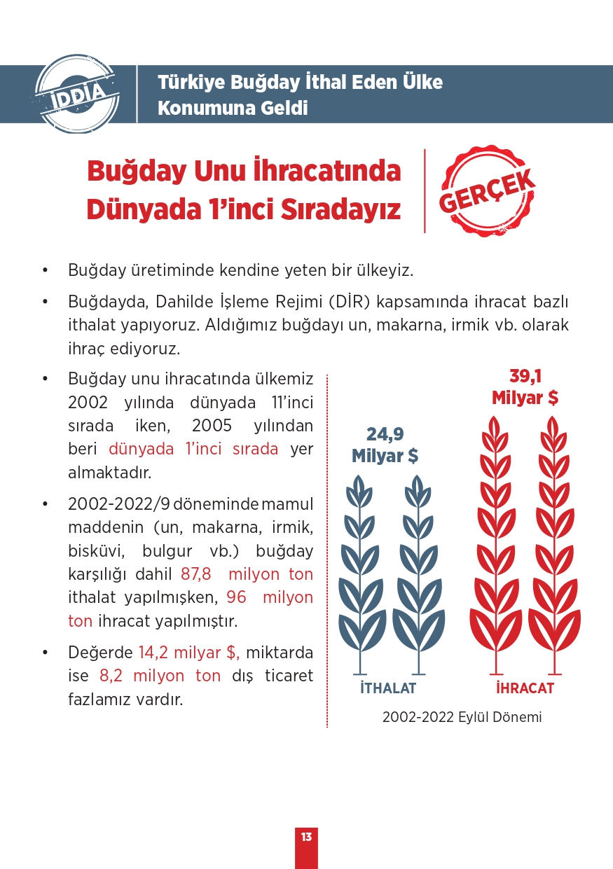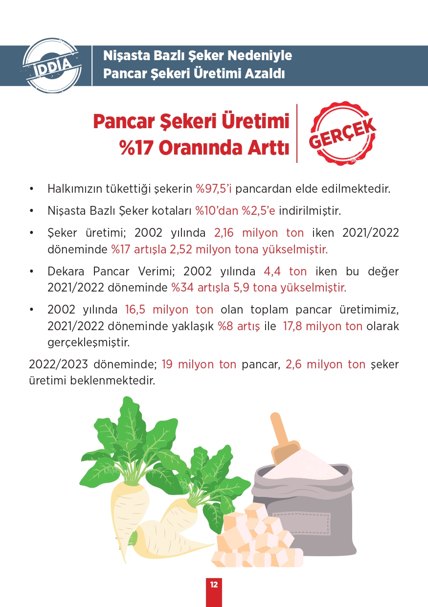Tarım ve Orman Bakanlığı tarafından paylaşılan "Kamuoyunda gündeme gelen iddialar ve gerçekler" isimli bilgilendirme metninde toplum tarafında doğru bilinen yanlışlara yer verildi. Özellikle muhalif medya tarafından öne çıkarılan bu yalanlar, toplumda yanlış algıya neden olurken Tarım ve Orman Bakanlığı tüm merak edilen konulara açıklık getirdi. "Bitkisel üretimimiz azalıyor, Tohumlulukta dışa bağımlı hale geldik, Orman yangınlarına müdahale edilmiyor, Yeterli fidan dikilmiyor" gibi vatandaşlar arasında doğru bilinen yanlışları Tarım ve Orman Bakanlığı rakamsal verilere dayandırarak paylaştı. İşte yalanlar ve gerçekler...