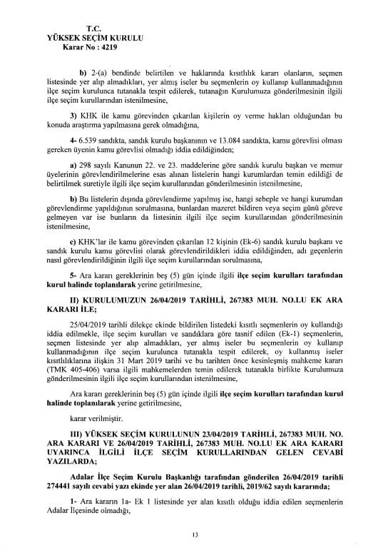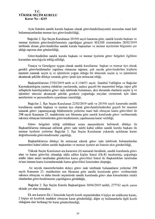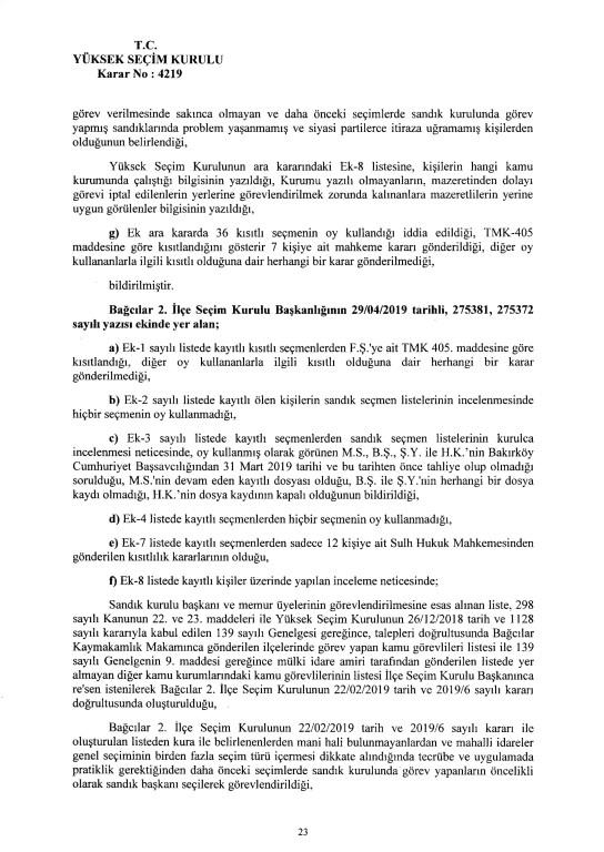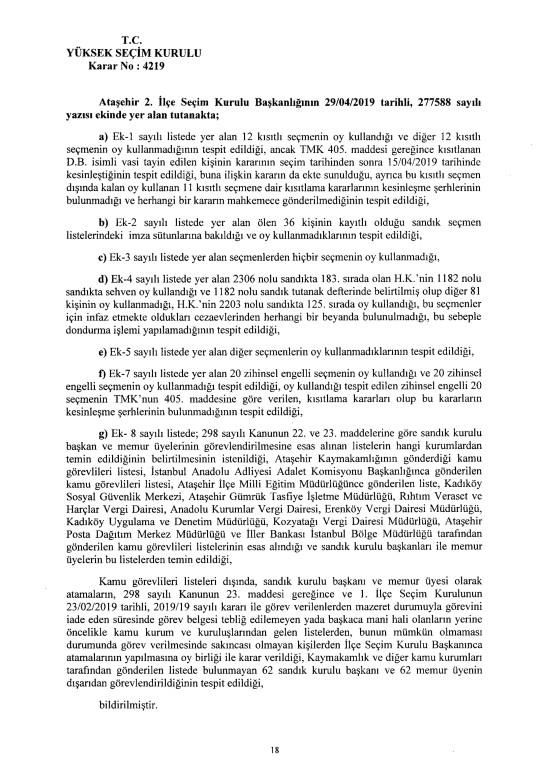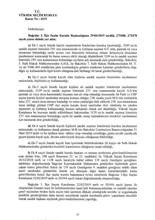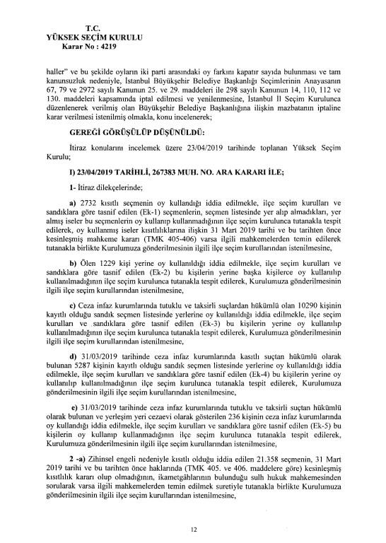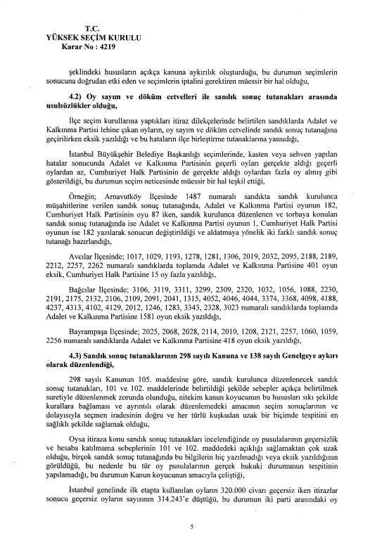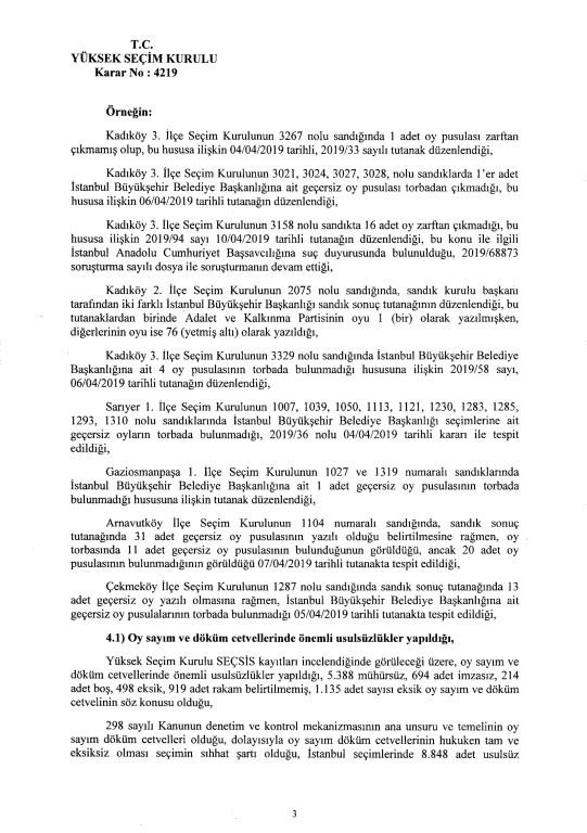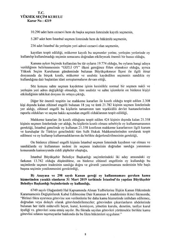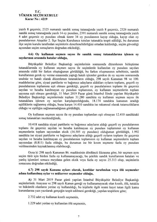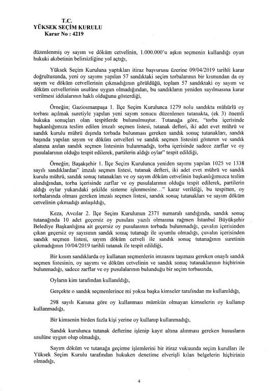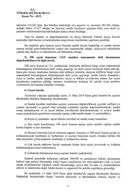 Son dakika haberi... Yüksek Seçim Kurulu, İstanbul Büyükşehir Belediye Başkanlığı seçiminin iptaline ilişkin 4'e karşı 7 üyenin oy çokluğuyla aldığı iptal kararının gerekçesi açıkladı. İptal gerekçesi tek tek anlatıldı. İşte 250 sayfalık gerekçeli kararın tamamı