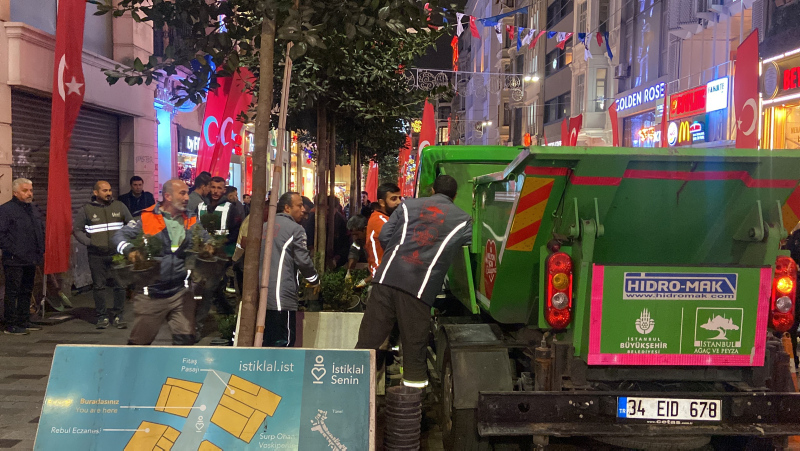 Geçtiğimiz Pazar günü İstiklal Caddesi'nde yaşanan ve 6 kişinin yaşamını kaybettiği hain saldırının ardından caddede bulunan beton saksı ve ağaçlar yerlerinden kaldırıldı. Kaldırma işlemi için akşam saatlerinde trafiğe kapanan İstiklal Caddesi saat 06.00'da araç ve yaya trafiğine tekrardan açıldı.