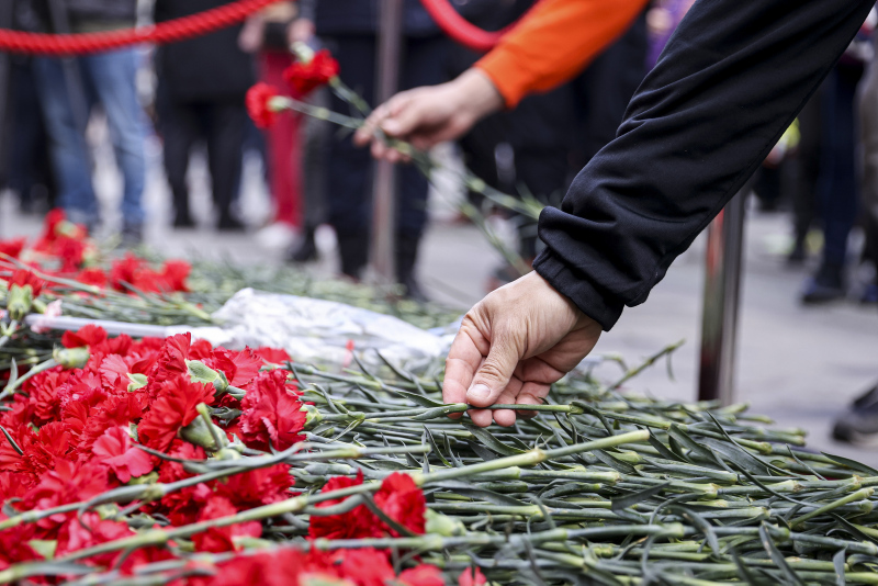 Diğer yandan saldırının gerçekleştirildiği noktaya ziyaretçi akını devam ediyor. Olay yerine kurulan platforma vatandaşlar çiçek bırakmayı sürdürüyor.