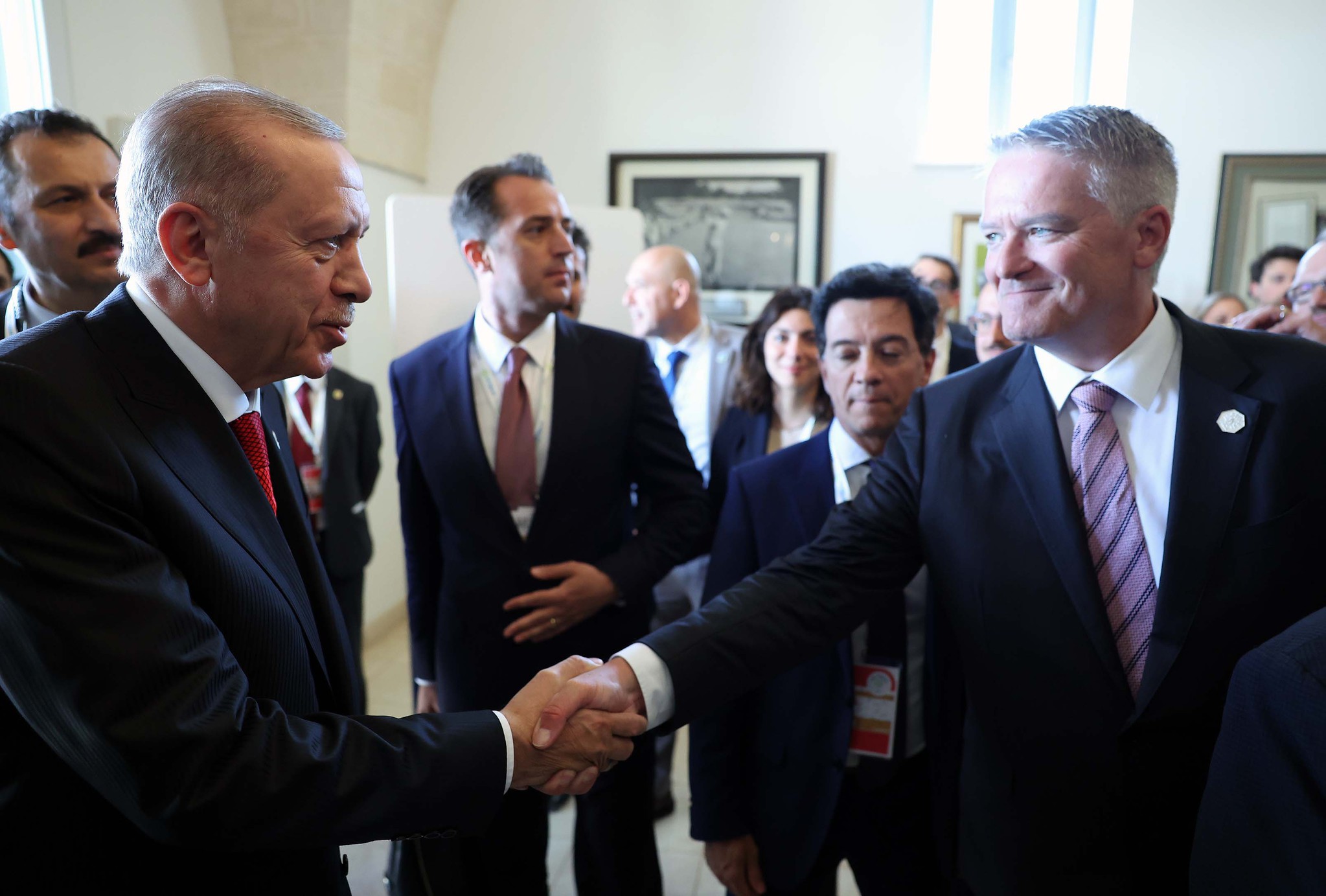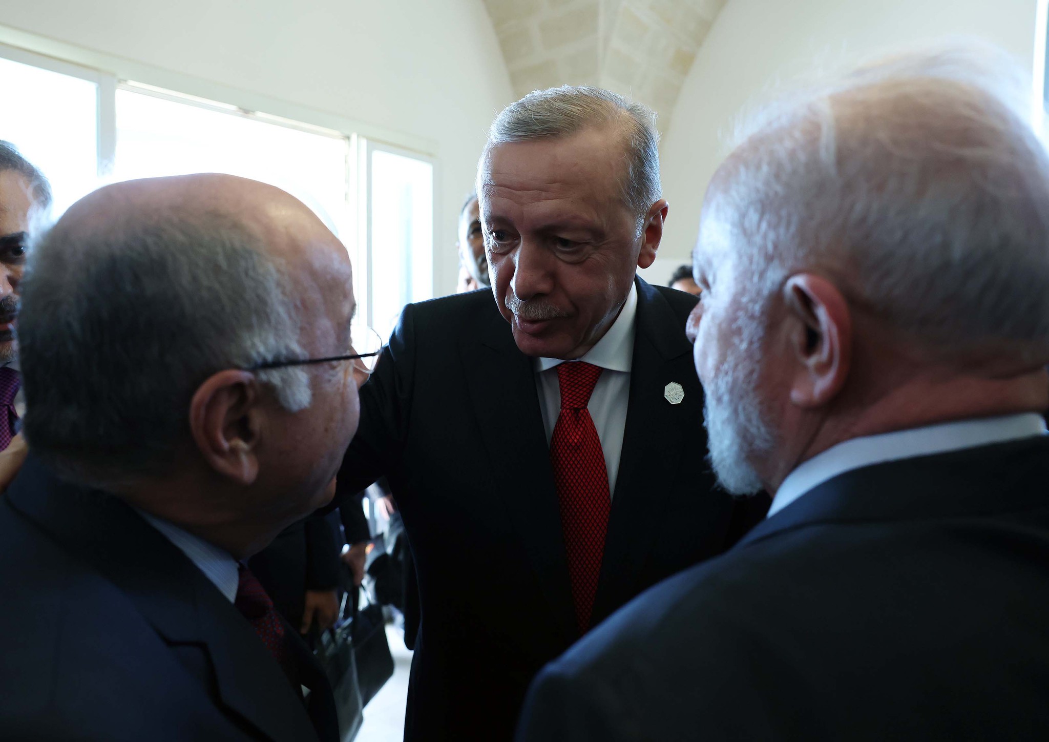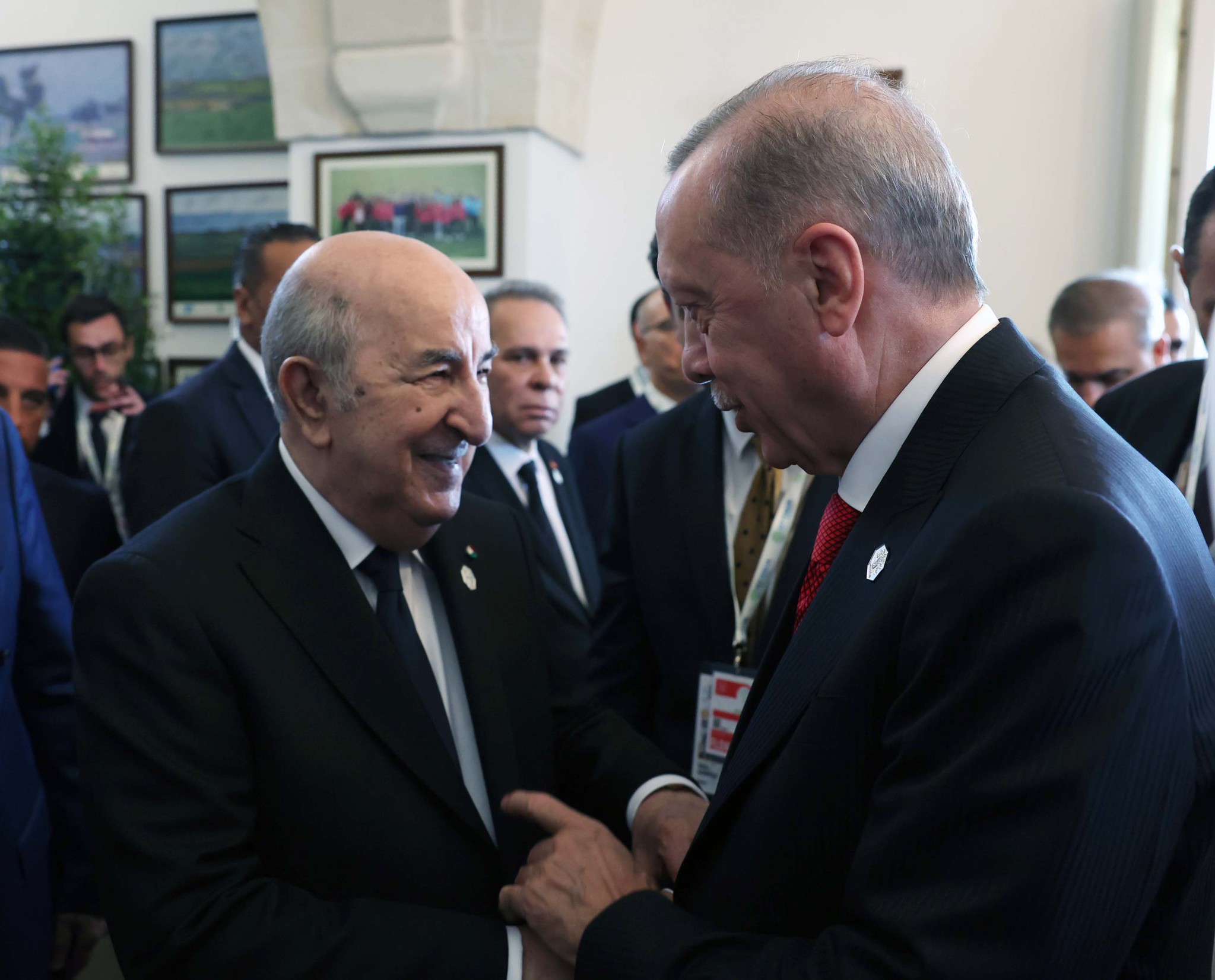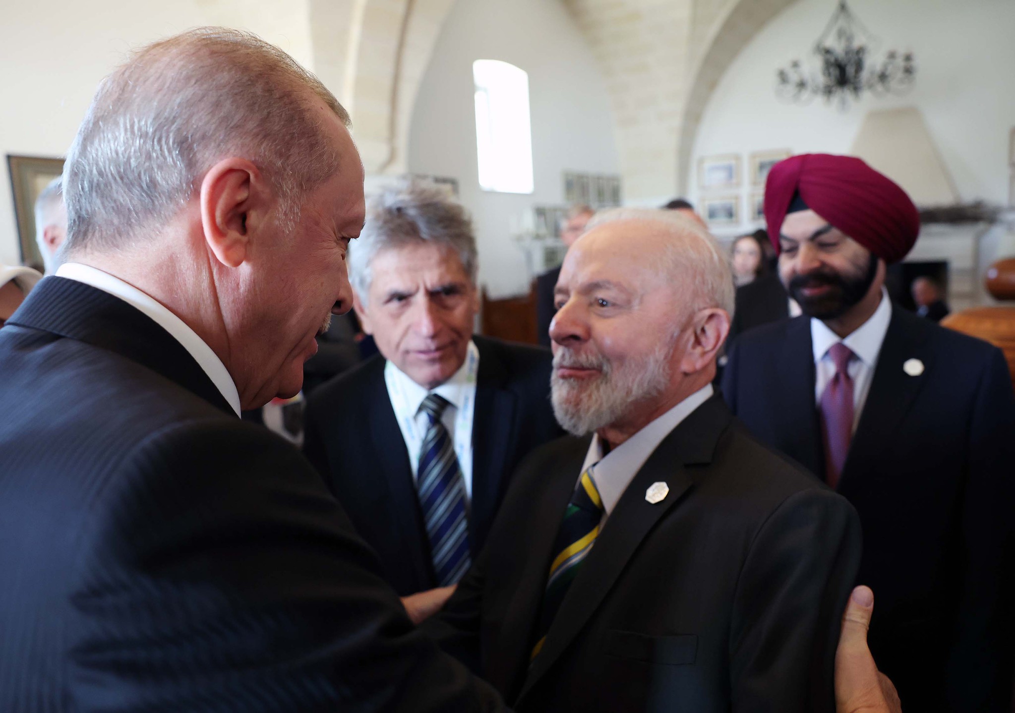 Başkan Recep Tayyip Erdoğan, G-7 Liderler Zirvesi'nde Afrika ve Akdeniz/Yapay Zeka ve Enerji Konulu Yüksek Düzeyli Oturum öncesinde liderle ayaküstü sohbet etti.