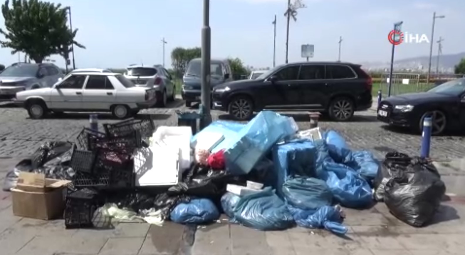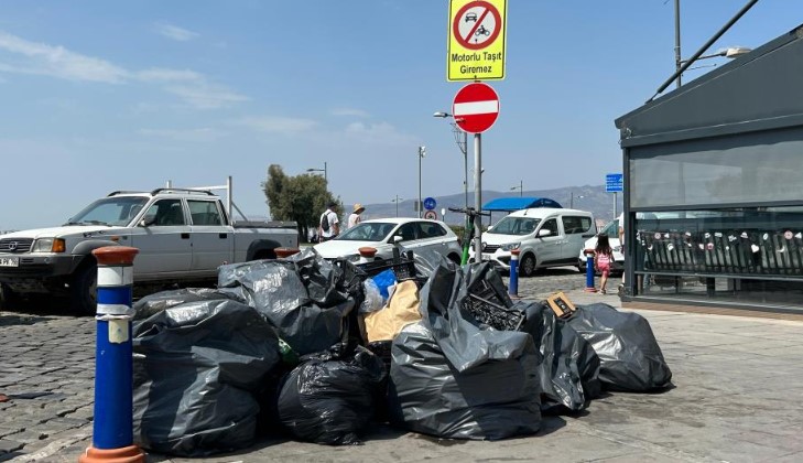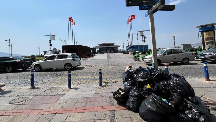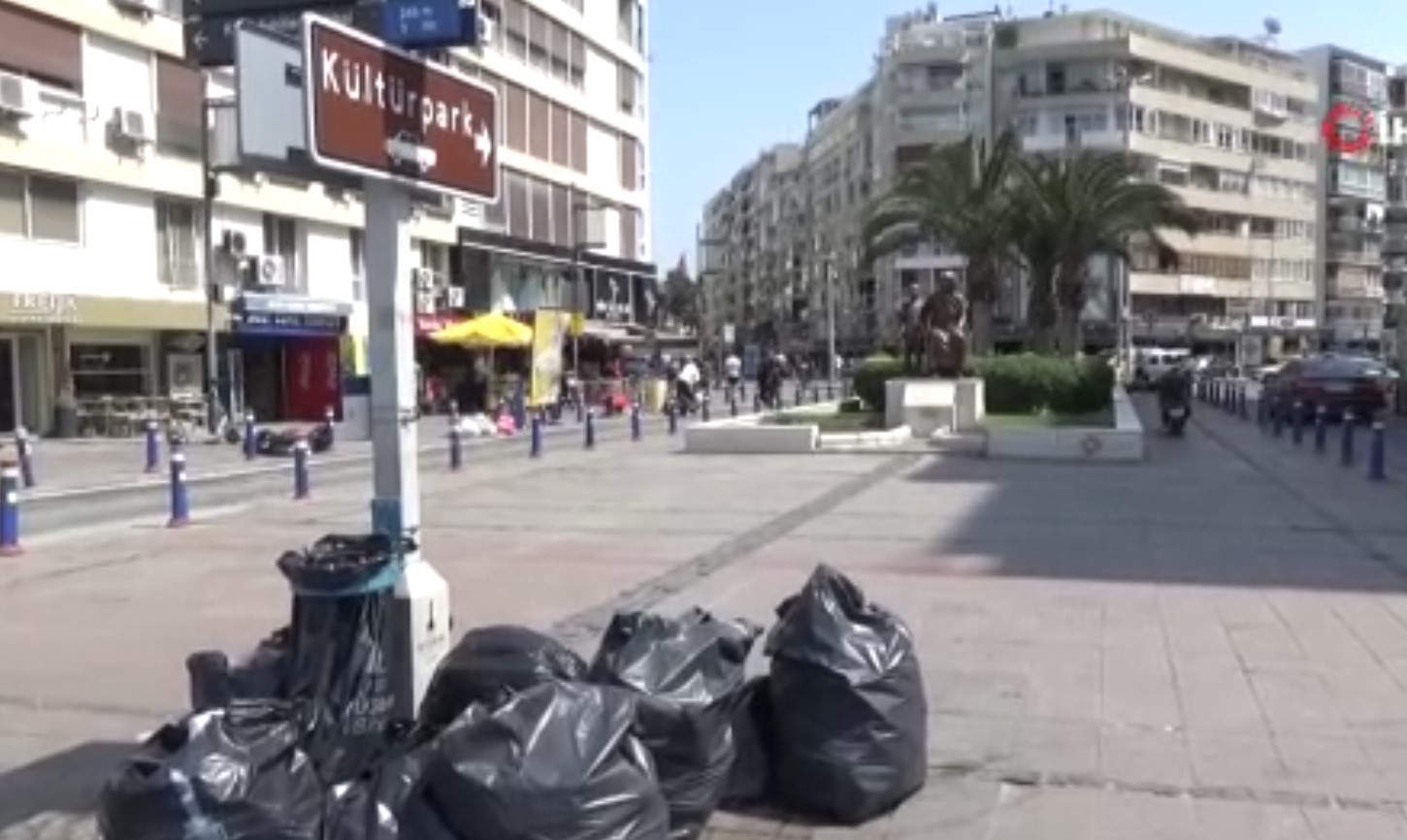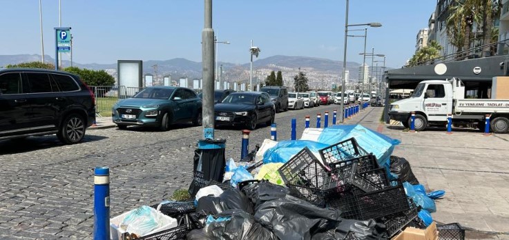 İşçilerin eylemi sebebiyle merkezi yerlerden biri olan Konak ilçesi Alsancak Kıbrıs Şehitleri Caddesi ve Kordon'da çöpler birikti.