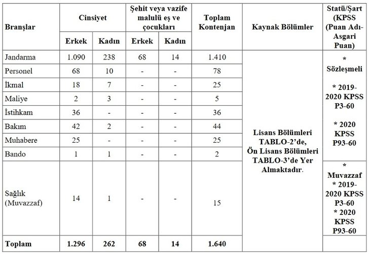 Jandarma astusbay alımı süreci başladı. Jandarma Genel Komutanlığı Karargâhı ile bağlısı birlik ve kurumlarda istihdam edilmek üzere Jandarma ve Sahil Güvenlik Akademisi Başkanlığına ilanda belirtilen branşlarda muvazzaf ve sözleşmeli astsubay alımı gerçekleştirilecek. Yayımlanan ilandaki belirtilen branşlara toplam 1.640 astsubay alımı yapılacak. Peki, Jandarma astsubay alımı ne zaman? 2021 Jandarma başvuru şartları ve kadro dağılımı nasıl olacak? İşte merak edilenler...