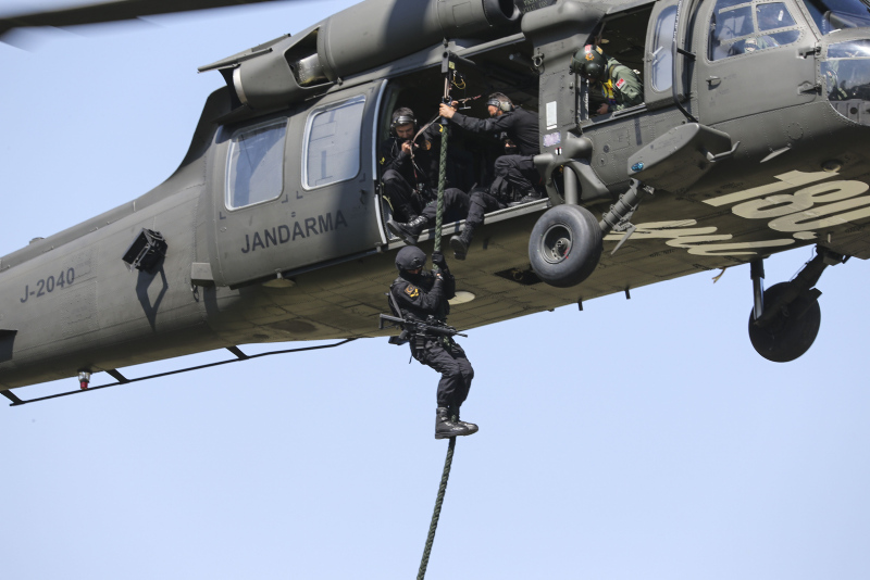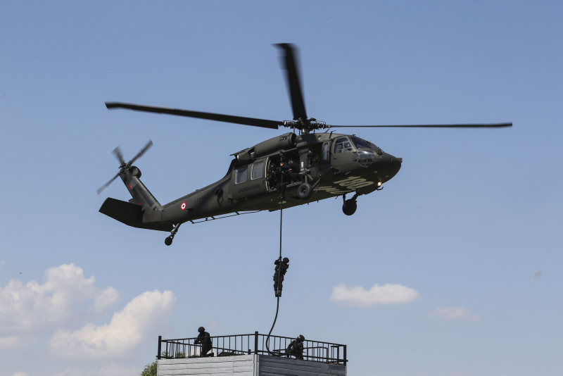 Jandarma Komando Özel Asayiş Komutanlığında (JÖAK) toplumsal olaylara müdahale, rehine kurtarma tatbikatları yapıldı. Tatbikat kapsamında askeri helikopterden tek tek inen komandolar olaylara müdahele etti. O anlara ait görüntüler ise nefesleri kesti.