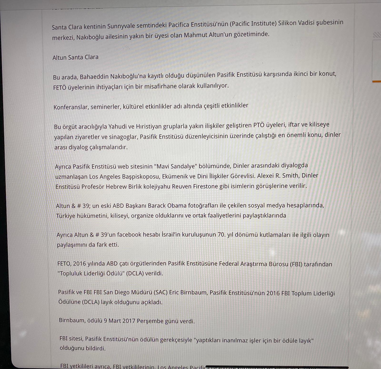 Altun'un Biden ile FETÖ arasında aracılık yaptığı ifade ediliyor. Altun'un, başkanlığını yaptığı örgüt Santa Clara kentine bağlı Sunnyvale semtinde bulunuyor.