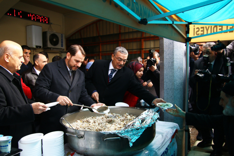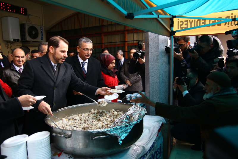 Hazine ve Maliye Bakanı Berat Albayrak, "Türkiye İçin Değişim Başlıyor" etkinlikleri kapsamında bulunduğu Kahramanmaraş'ta, Ulu Cami'de kıldığı cuma namazının ardından vatandaşlara pilav dağıttı.