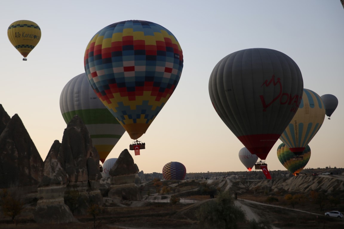 Sıcak hava balon pilotu Tolga Eke, gazetecilere yaptığı açıklamada, tüm resmi bayramlarda sıcak hava balonlarının Türk bayraklarıyla uçtuğunu, 10 Kasım'da da özgürlüğün timsali bayrakların yanı sıra Gazi Atatürk'ün resimlerini içeren çeşitli afişlerin sepetlere asıldığını belirtti.