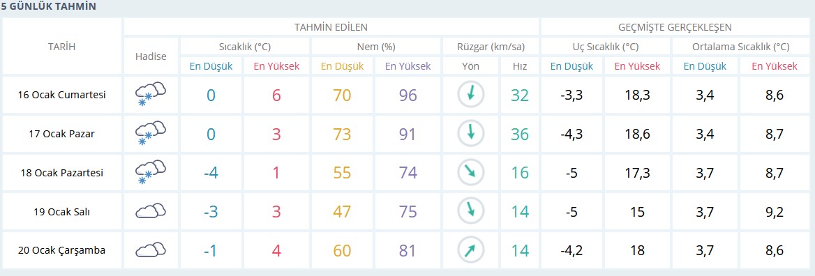İstanbul'da 16 Ocak Cumartesi günü saat 12.00'de yağmurlu hava etkili olacak. Yağışlı hava saat 15.00'te karla karışık yağmur olarak görülecek. Merakla beklenen kar yağışı ise saat 18.00'de başlayacak. 16 Ocak'ta başlayacak kar yağışı pazar ve pazartesi günleri de etkisini sürdürecek. 19 Ocak Salı günü ise çok bulutlu hava etkili olacak.