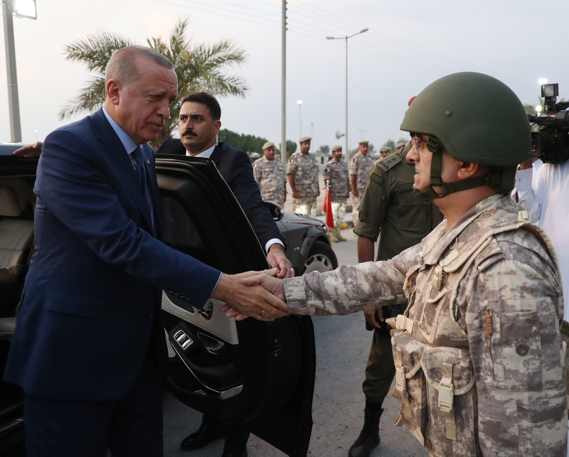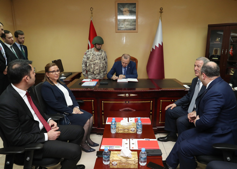 Başkan Erdoğan, resmi ziyaret için geldiği Katar'da Türk-Katar Birleşik Müşterek Kuvvet Komutanlığı Tarık bin Ziyad Kışlası'nı ziyaret etti.