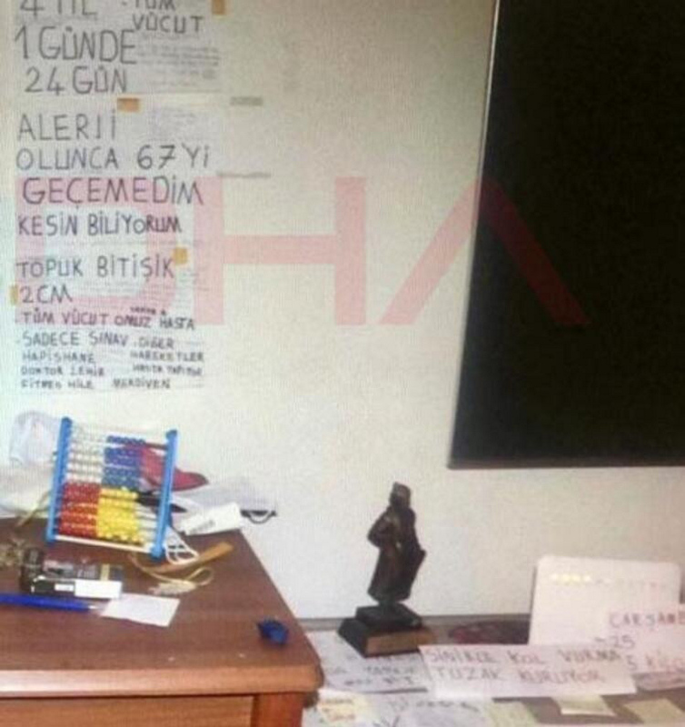 Göktuğ'un evindeki duvarlarda ise "Spor yap", "Tuzak kur", "Karnına bıçak sapla", "Haziran, Mayıs, Nisan", "Osman'ı öldür" şeklinde yazılar vardı.