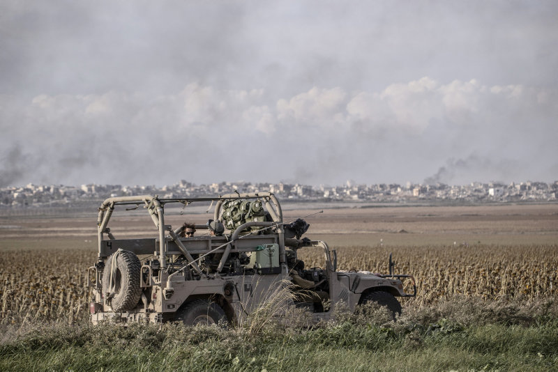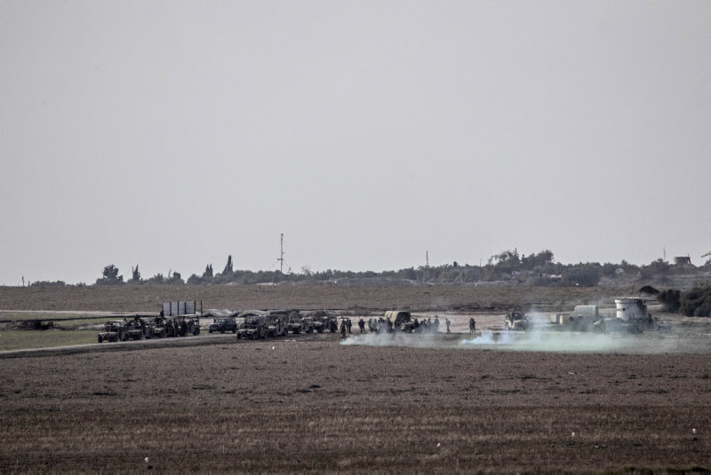 Zırhlı Personel Taşıyıcılar (ZPT) ve askeri cipler, Gazze'nin Şucaiye bölgesine doğru ilerlerken, helikopterlerin de İsrail-Gazze sınırının sıfır noktasına indiği ve kalktığı görüldü.