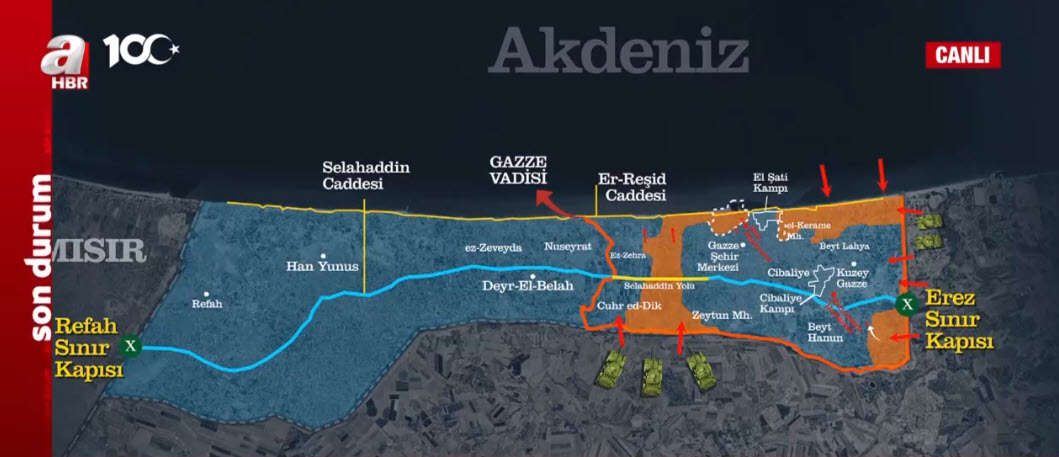 Dört kollu saldırının temel maksadı kuşatma saldırısı olarak söylendi maksadı hasıl olmuyor. Burada tam şehir merkezinde yeraltı tünellerinde binlerce Hamas mensubu var Hamas birlikleri var.