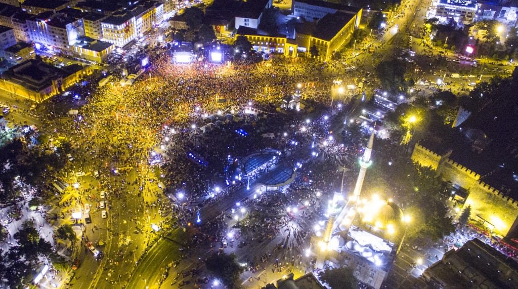 Kayseri Büyükşehir Belediyesi ve emniyet kayıtlarına göre 21 gündür devam eden 'demokrasi nöbeti'nde rekor 170 bin kişinin katılımıyla 17 Temmuz gecesi kırıldı. Yetkililer bu rakama 'drone' ile havadan çekilen görüntülerden ulaşıldığını söyledi.