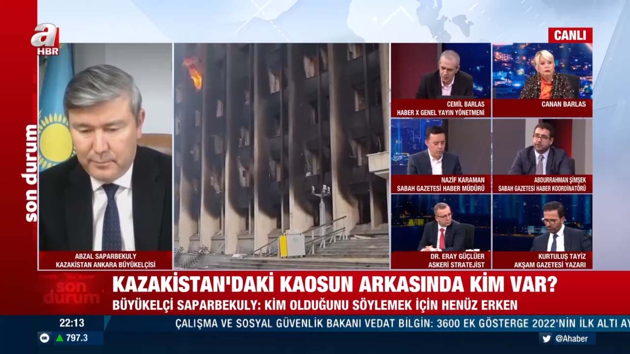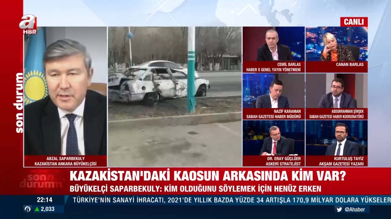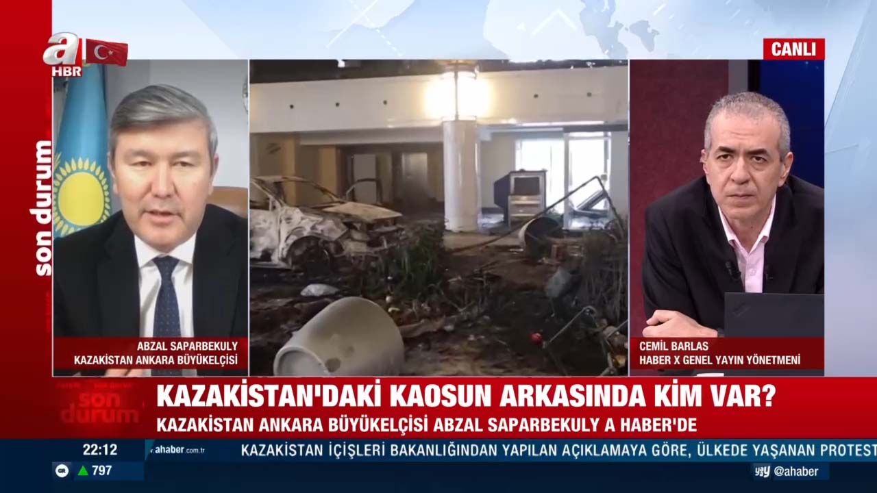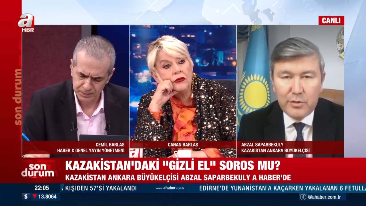 A Haber ekranında yayınlanan "Canan Barlas ile Gündem" programına konuk olan Kazakistan Ankara Büyükelçisi Abzal Saparbekuly ülkesinden yaşanan protestolara yönelik önemli açıklamalarda bulundu.