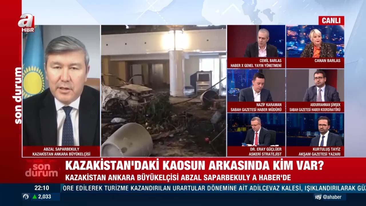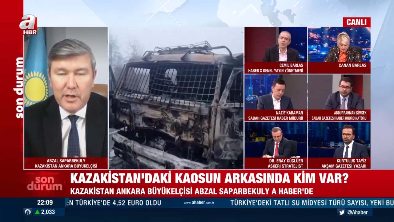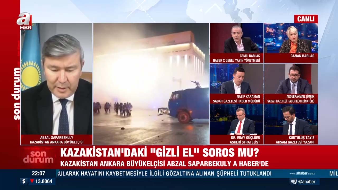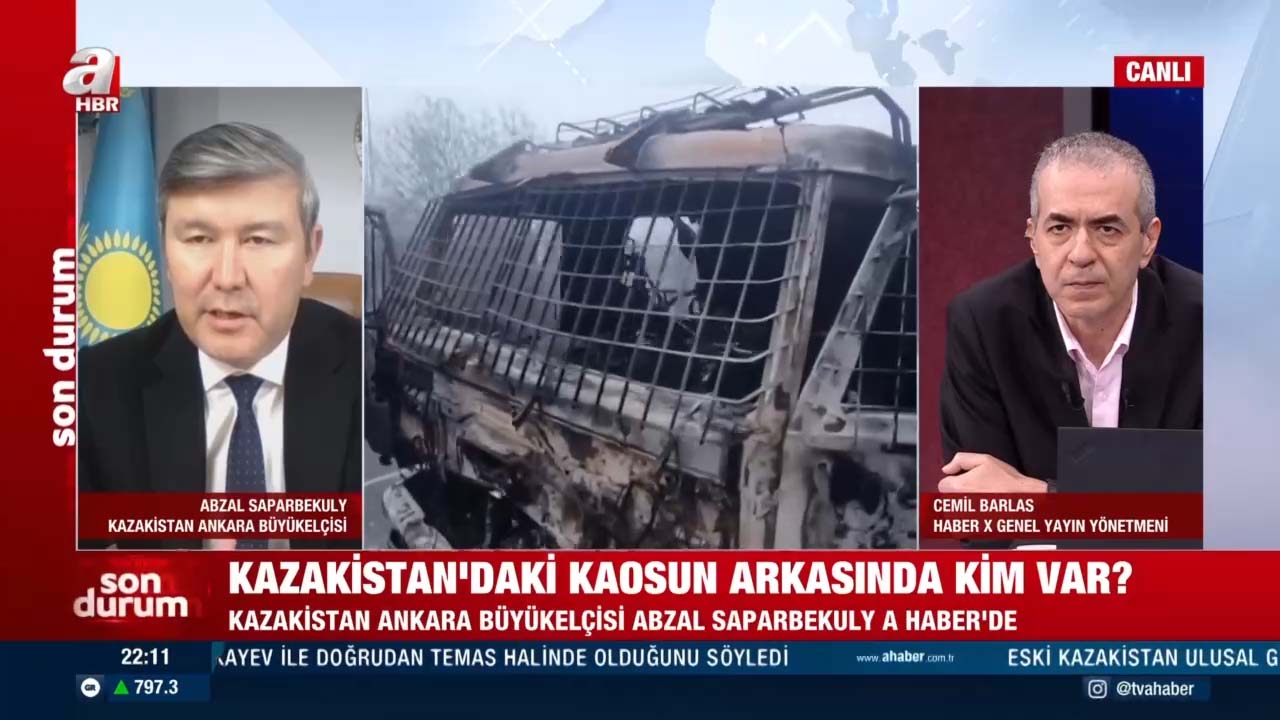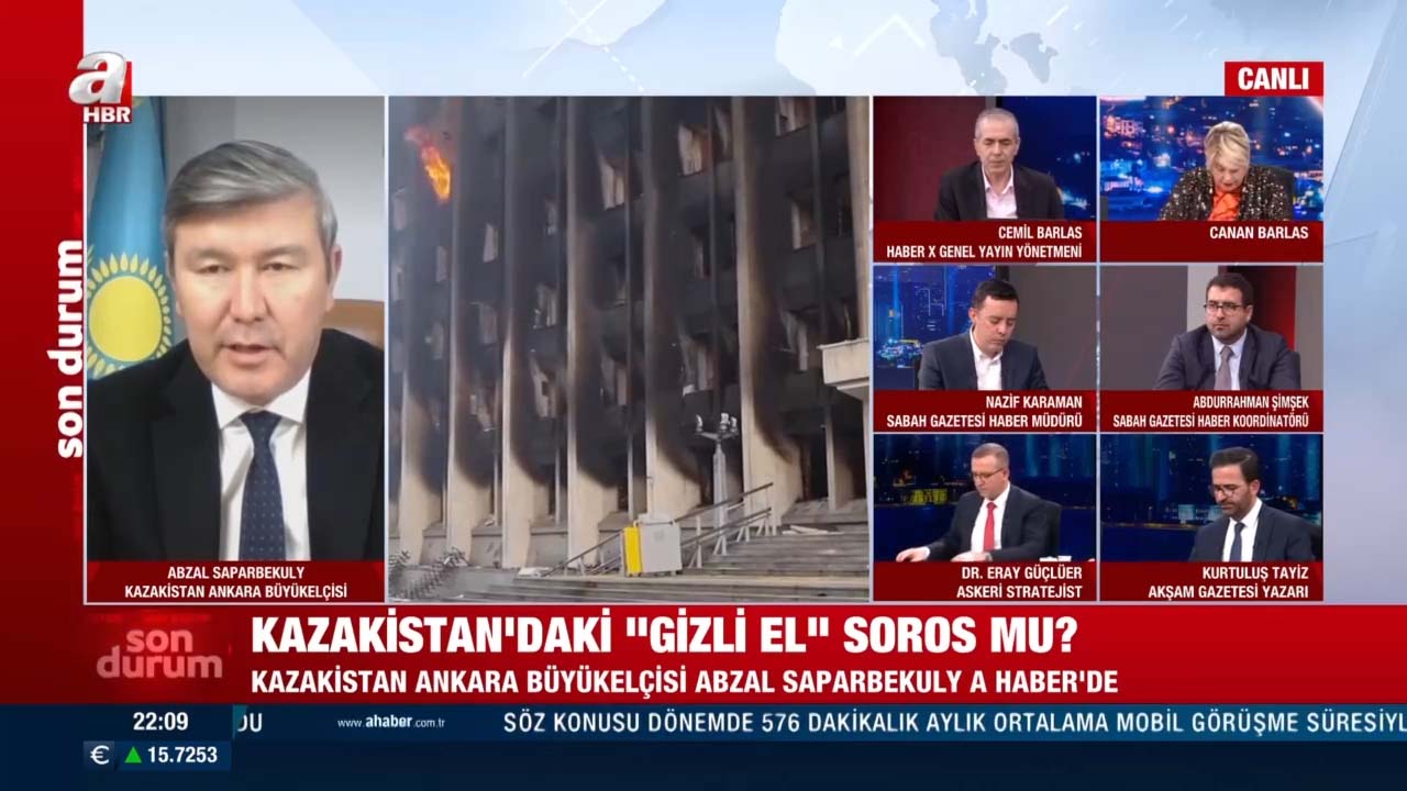 A Haber ekranında yayınlanan "Canan Barlas ile Gündem" programına konuk olan Kazakistan Ankara Büyükelçisi Abzal Saparbekuly ülkesinden yaşanan protestolara yönelik önemli açıklamalarda bulundu.
