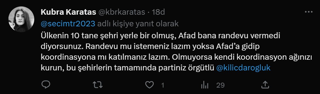 "AFAD'tan randevu talebinde bulundum, şu ana kadar bir geri dönüş olmadı. Nedenini gayet iyi biliyorum" diyen Kılıçdaroğlu'na taraflı tarafsız birçok vatandaş tepki gösterdi.