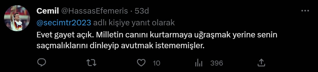 "Evet gayet açık. Milletin canını kurtarmaya uğraşmak yerine senin saçmalıklarını dinleyip avutmak istememişler."