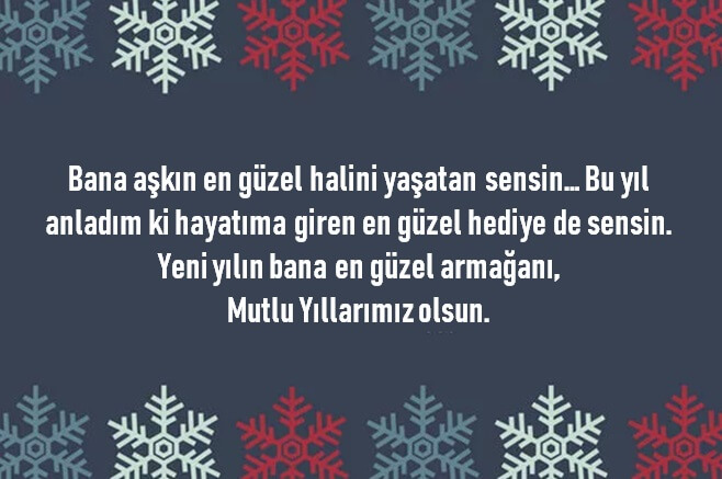 Hayatımda olman, bana ihtiyaç duyduğum zamanda güvenebileceğim ve arayabileceğim birisi olduğunu garanti ediyor. Bu senenin sona ermesiyle birlikte, bir başka yılın hayatlarımıza girerek, bize birbirimizin her zaman yanında olma şansını elde ediyoruz. Yeni Yılınız mutlu olsun!