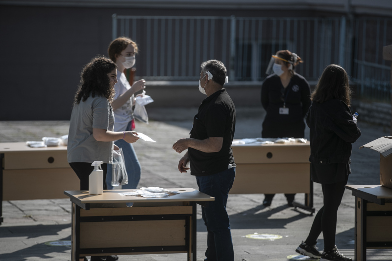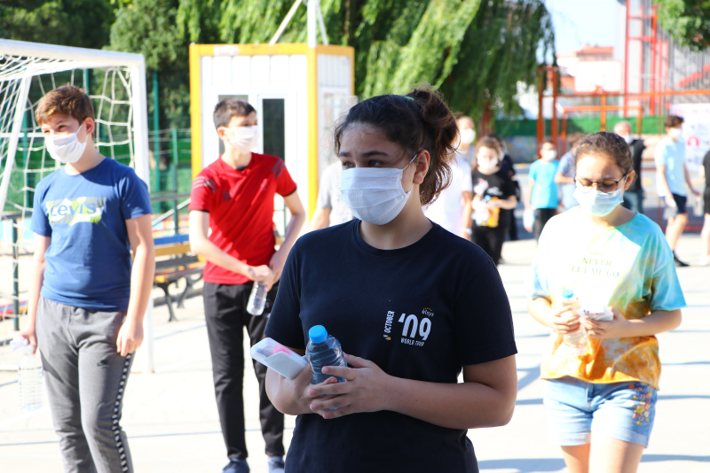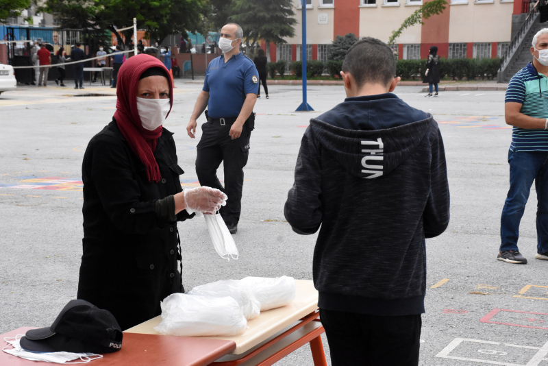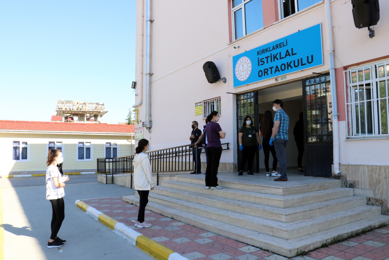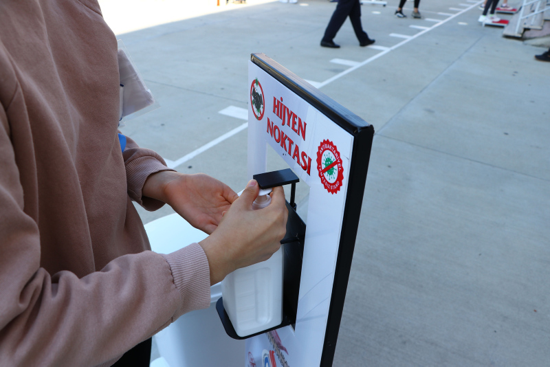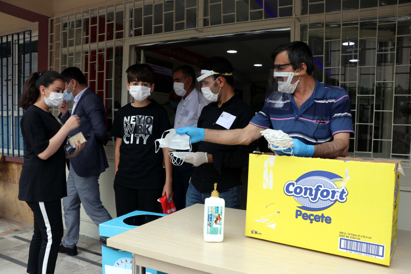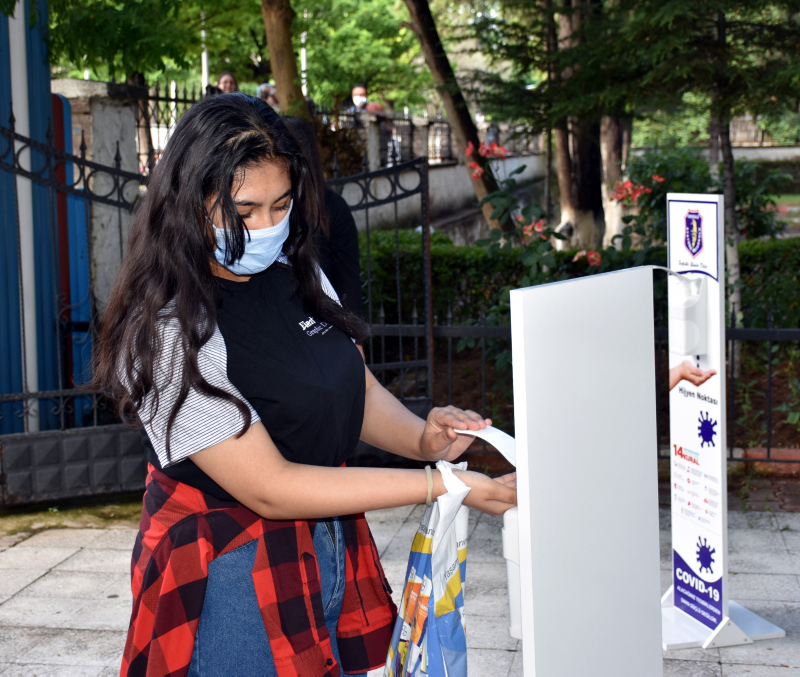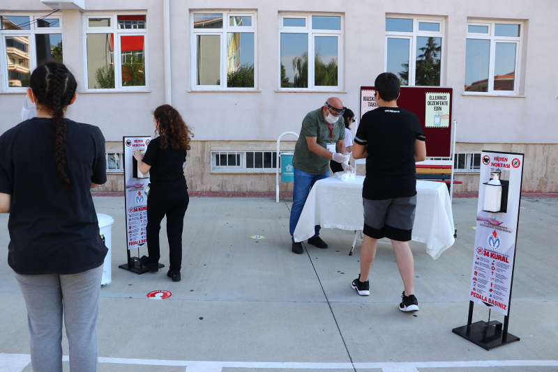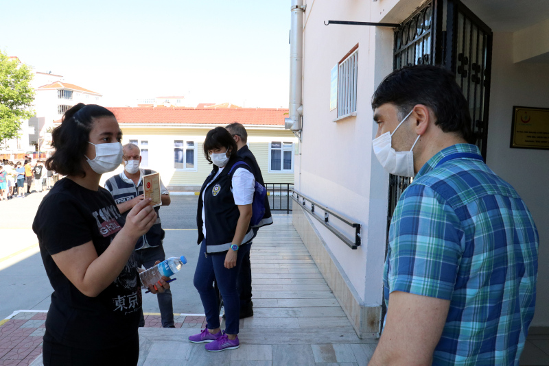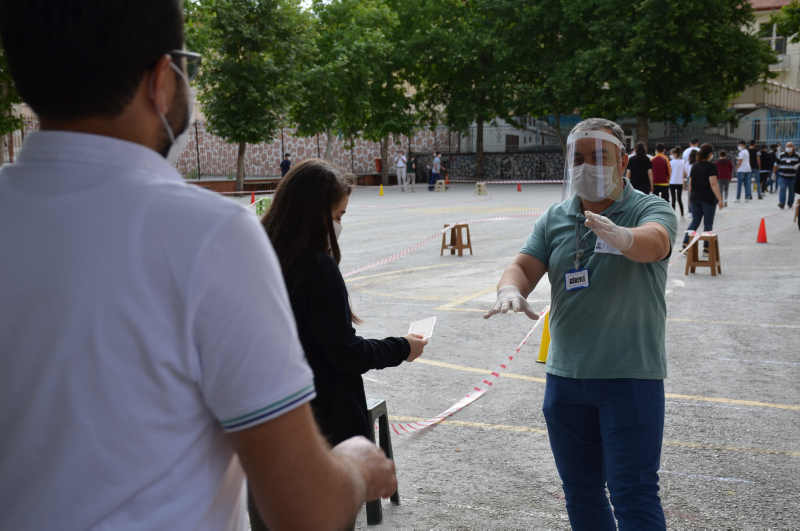 Maskesi olmayan öğrencilere maske dağıtıldı. Sınav binasına girişte el dezenfektanı kullanan öğrenciler, evrak kontrolü ve üst araması yapıldıktan sonra bekletilmeden salonlara alındı.