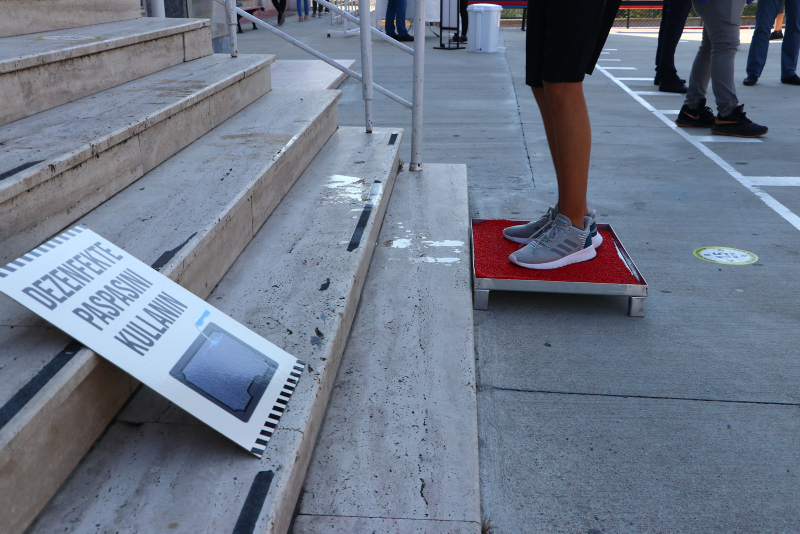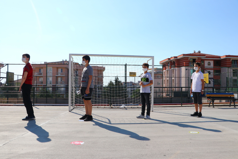 Sınav binalarına gelen öğrencilerin, okulun bahçesine girişleri sırasında en az 1 metrelik (3-4 adım) sosyal mesafenin korunması sağlandı ve yığılma oluşmasını engelleyecek önlemler alındı.