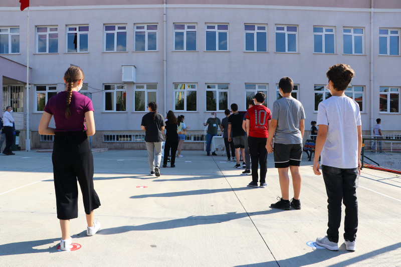Kovid-19 tedbirleri kapsamında sosyal mesafeyi sağlayabilmek için okullarda güvenli alanlar oluşturuldu, sınav binaları detaylı olarak temizlendi ve sınıflar dezenfekte edilerek hijyen sağlandı.