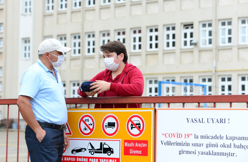 Sınava verilen 45 dakikalık arada, görevliler yeni tip koronavirüs (Kovid-19) tedbirleri kapsamında öğrencilerin, okul içinde veya bahçesinde sosyal mesafe kuralına uyacakları şekilde gerekli tedbirleri aldı. Öğrencilerin, okullardan ayrılmasına izin verilmedi.