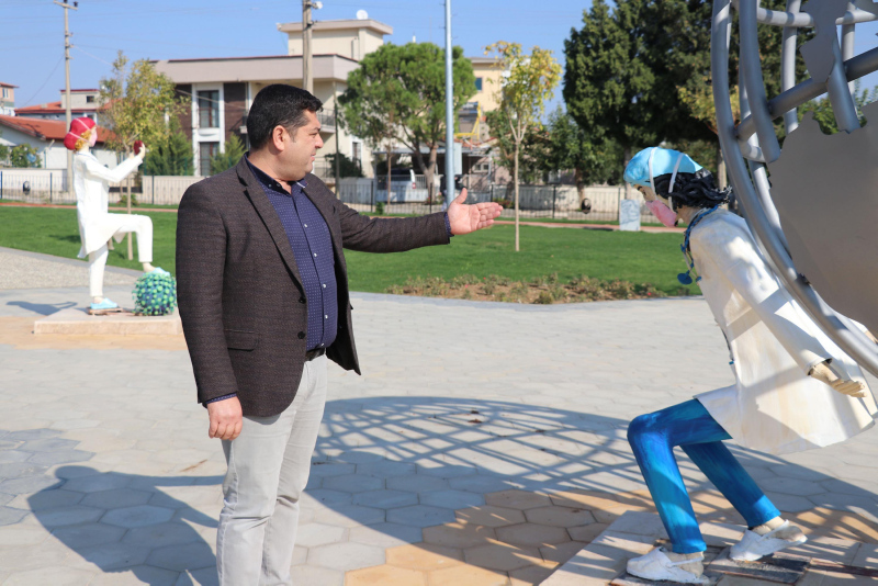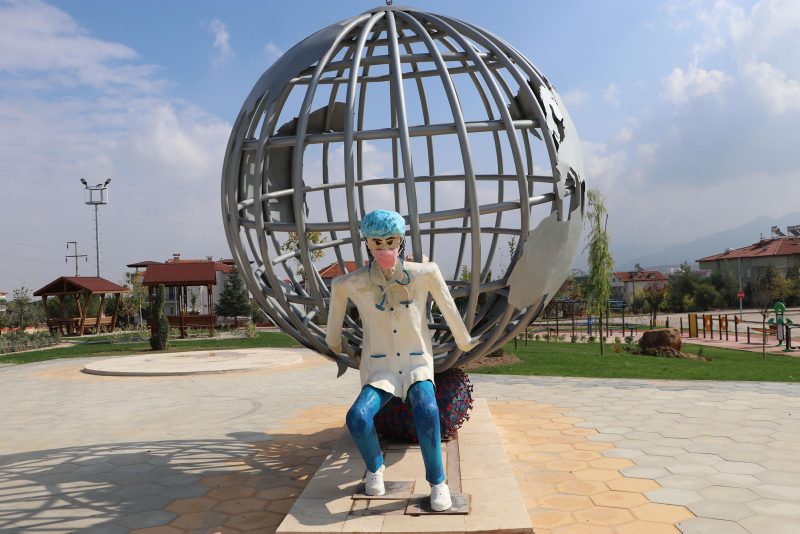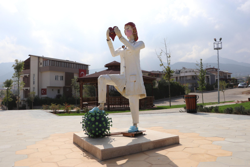 Bahçelievler Mahallesi Gülistan Caddesi'nde 9 bin 600 metrekarelik alan üzerine kurulan, içerisinde oyun alanları, yürüyüş ve koşu yolları ile jimnastik ve fitness aletleri bulunan parka, sağlık personellerini simgeleyen heykeller konuldu.