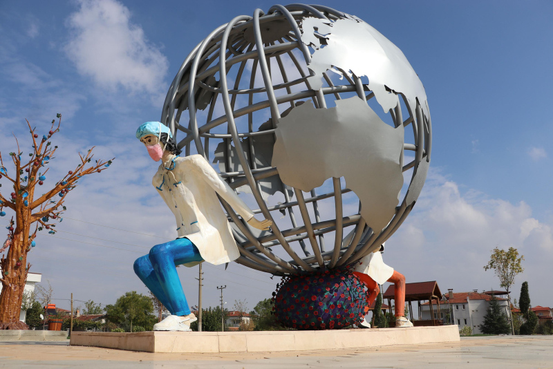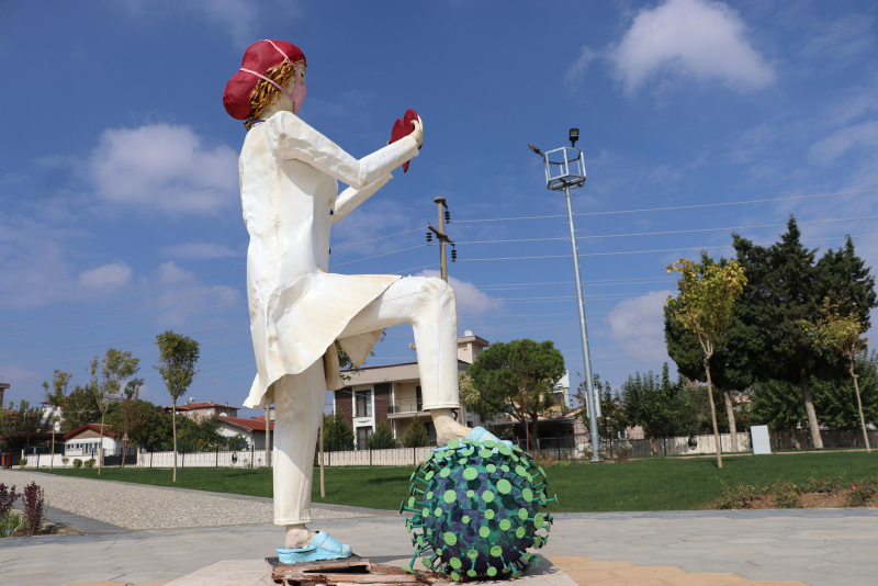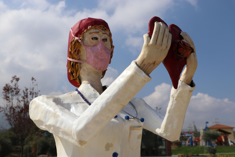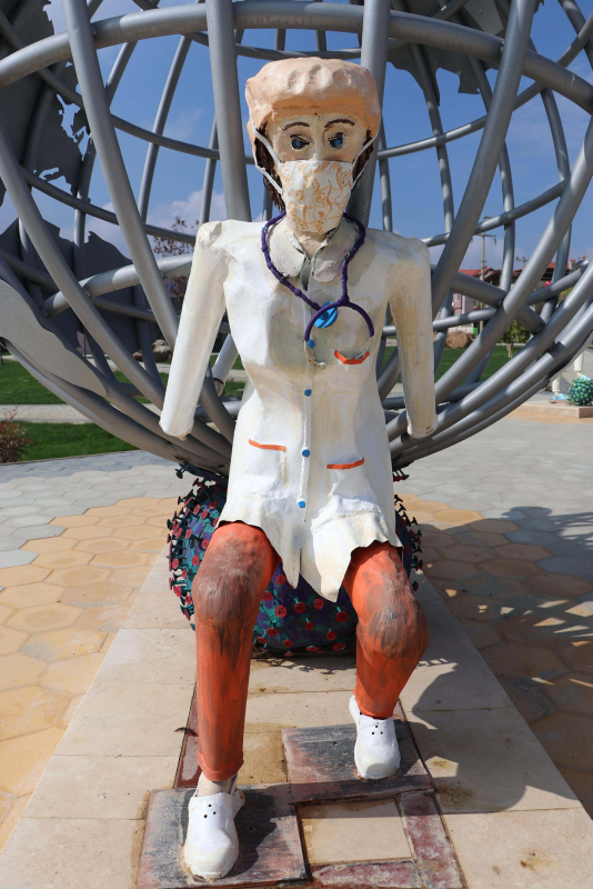 Kısa bir süre içerisinde açılması planlanan parktaki sağlık çalışanlarının simgeleyen heykeller, sosyal medyada tartışma konusu oldu.
