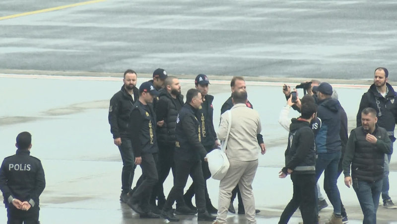 Bu sırada uçağın yanaşacağı park pozisyonunda polis ekipleri güvenlik önlemi aldı. Uçağın arka kapısından içeri giren polislerin, önce Özer'e ait olduğu belirtilen; içinde laptop, cep telefonu ve dijital materyallerin bulunduğu özel kutuyu teslim alması dikkat çekti.