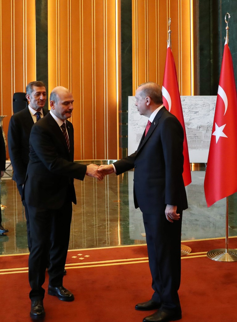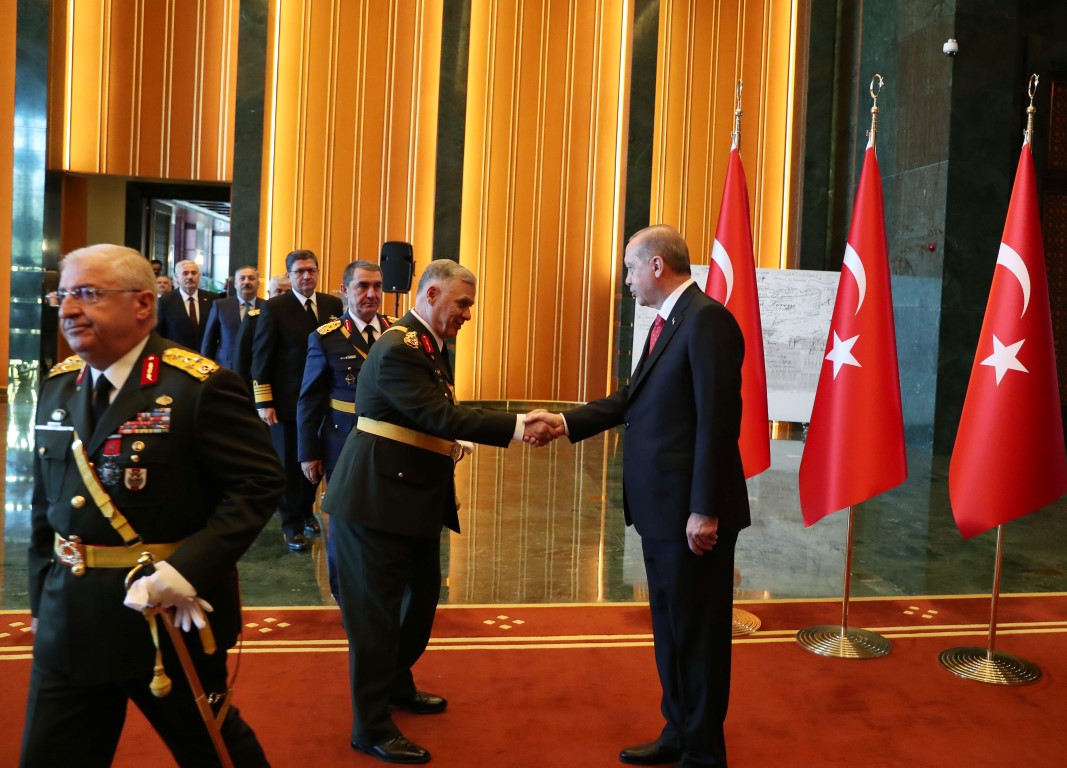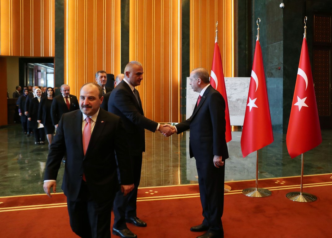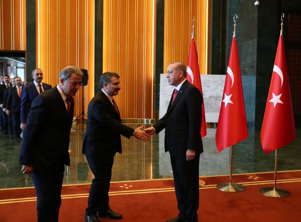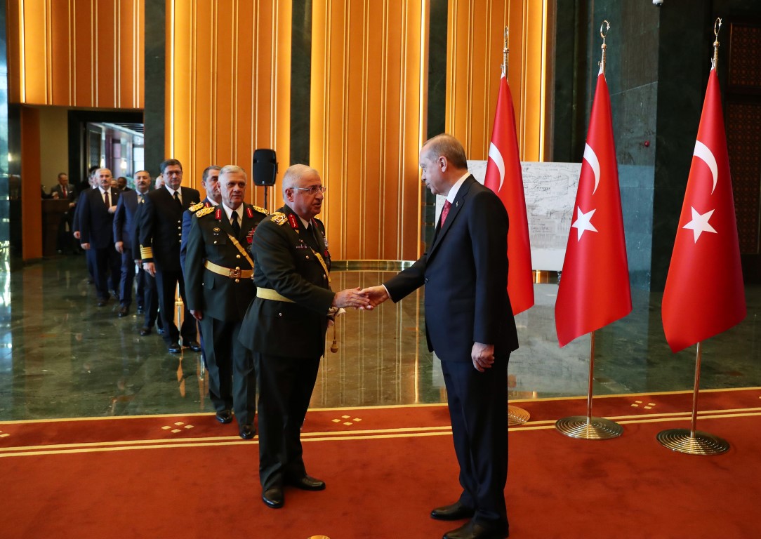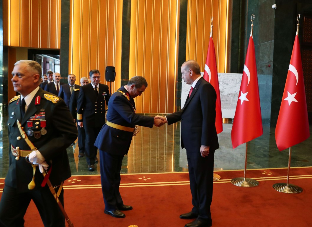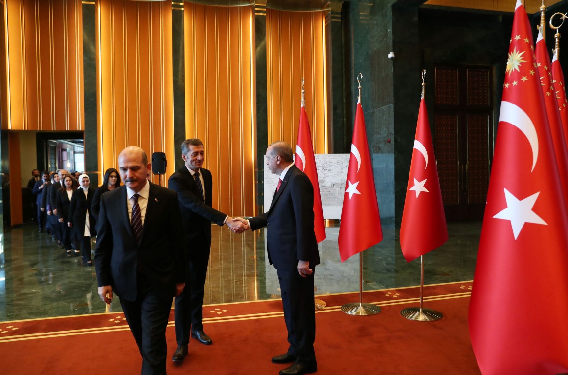 Sırasıyla TBMM Başkanı Binali Yıldırım, Cumhurbaşkanı Yardımcısı Fuat Oktay, AK Parti TBMM Grup Başkanı Naci Bostancı, Anayasa Mahkemesi Başkanı Zühtü Arslan, Yargıtay Başkanı İsmail Rüştü Cirit, Danıştay Başkanı Zerrin Güngör, Sayıştay Başkanı Ahmet Seyit Ahmet Baş, MHP Genel Başkanı Devlet Bahçeli, Cumhurbaşkanlığı Kabinesi üyeleri Erdoğan'a tebriklerini iletti. Daha sonra da milletvekilleri, Genelkurmay Başkanı Orgeneral Yaşar Güler ve kuvvet komutanları, yabancı misyon temsilcileri ve askeri personel Cumhurbaşkanı Erdoğan'a tebriklerini iletti.