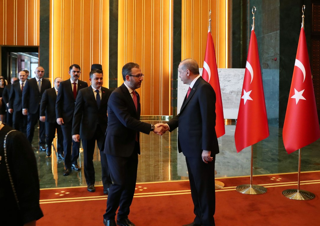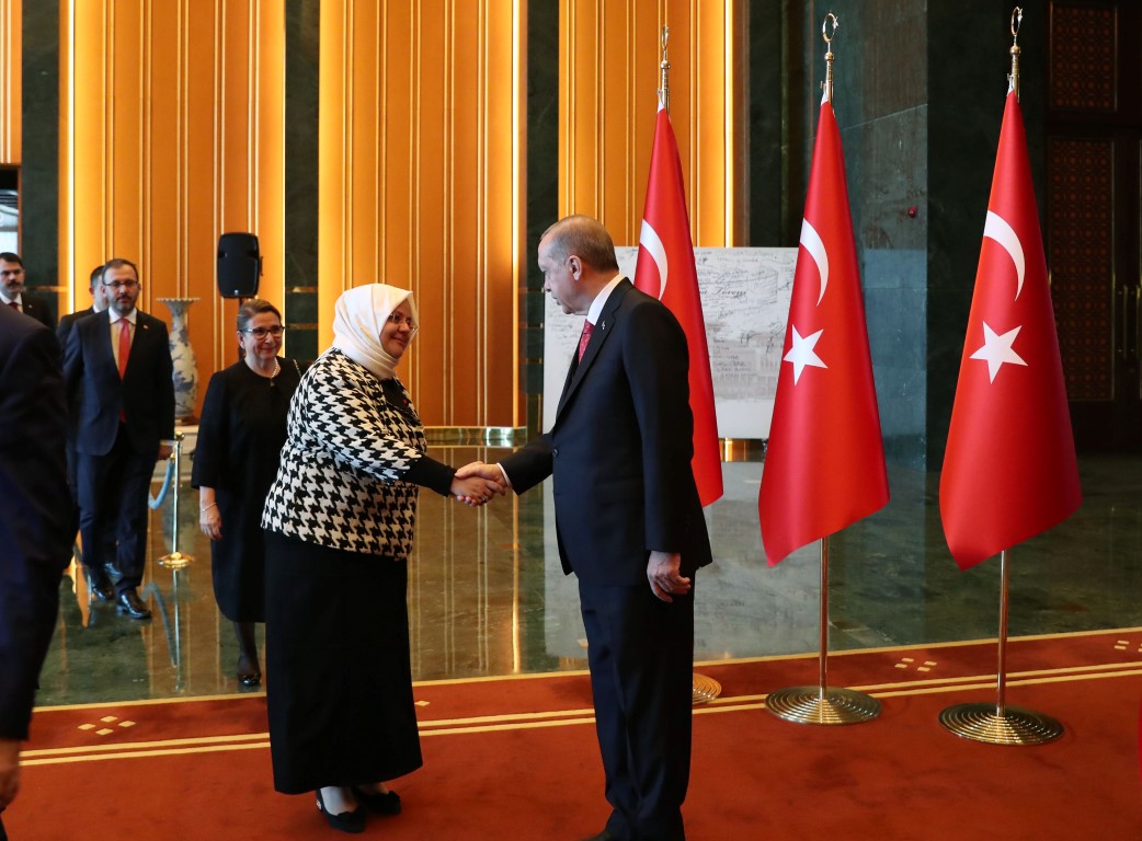 Anıtkabir'deki törenin ardından Cumhurbaşkanlığı Külliyesi'ne geçen Başkan Erdoğan, burada yapılan törende tebrikleri kabul etti.