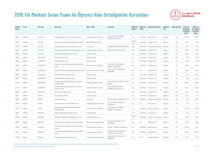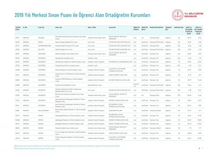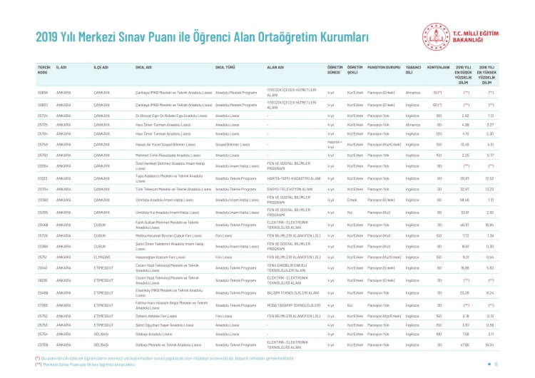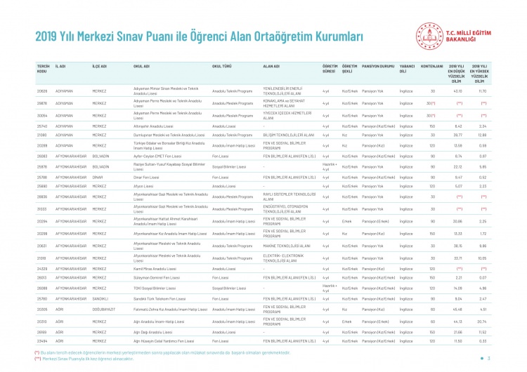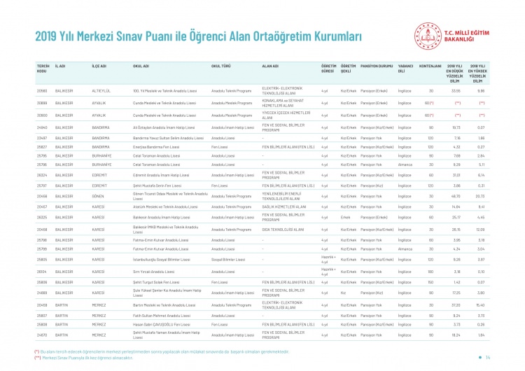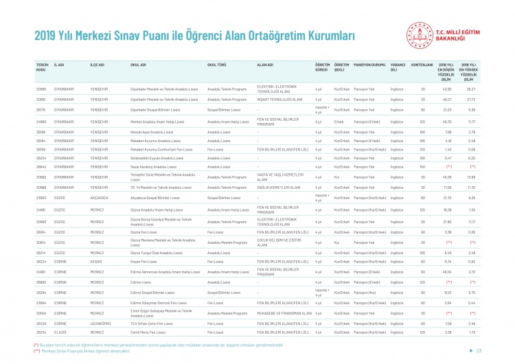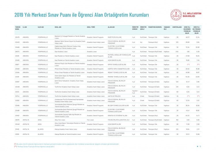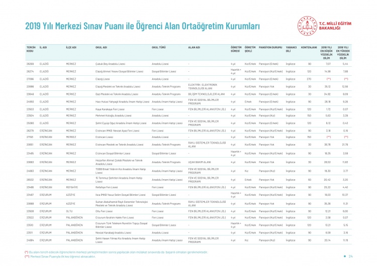 LGS kapsamındaki yerleştirme sonuçlarına göre liselerin boş kontenjanları ve taban puanları 'http://e-okul.meb.gov.tr ' üzerinden yayımlandı.