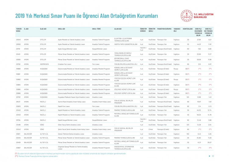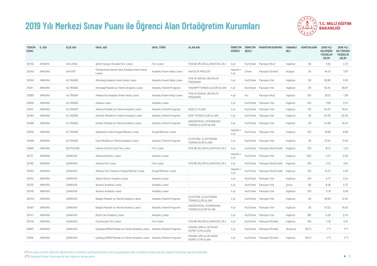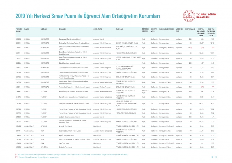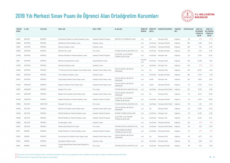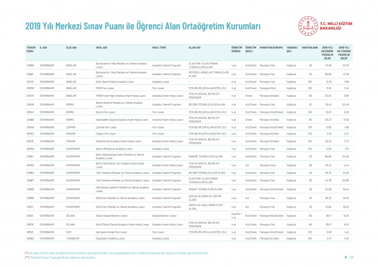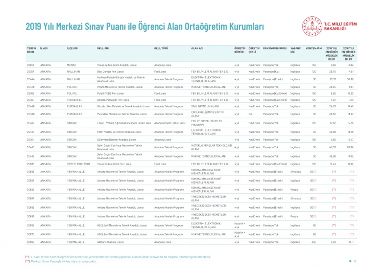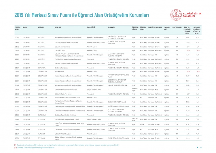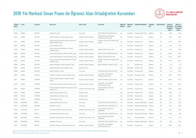 LGS kapsamındaki yerleştirme sonuçlarına göre liselerin boş kontenjanları ve taban puanları 'http://e-okul.meb.gov.tr ' üzerinden yayımlandı.