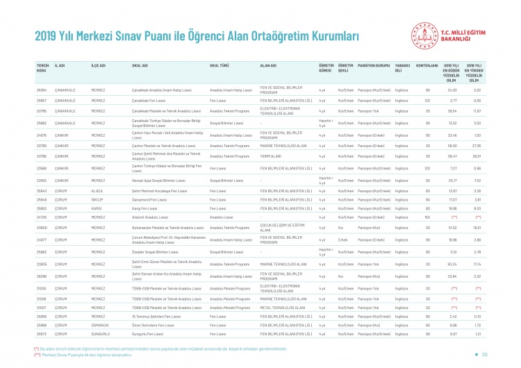 LİSE BOŞ KONTENJANLARI YAYINLANDI MI?