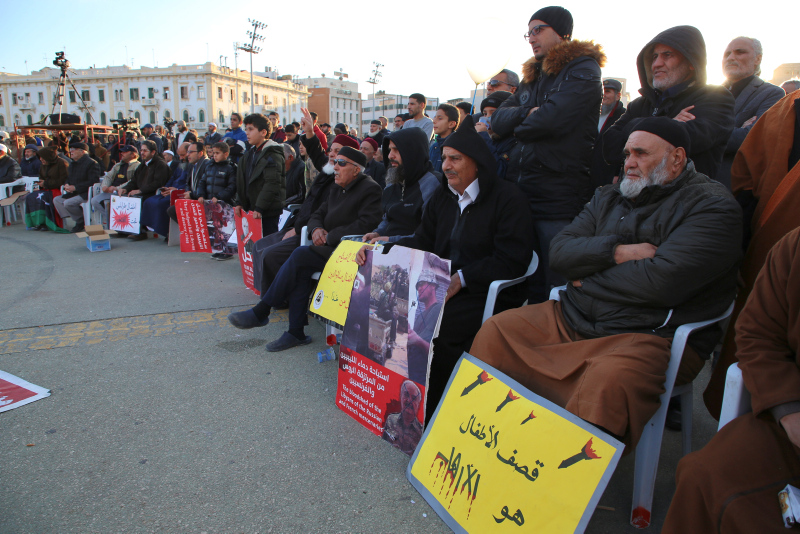 Akşam saatlerinde başkentin kalbi konumundaki Şehitler Meydanı'nda toplanan Trabluslular, Hafter saflarındaki milis ve paralı askerlerin gerçekleştirdiği saldırılara tepki gösterdi.