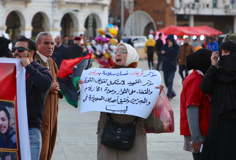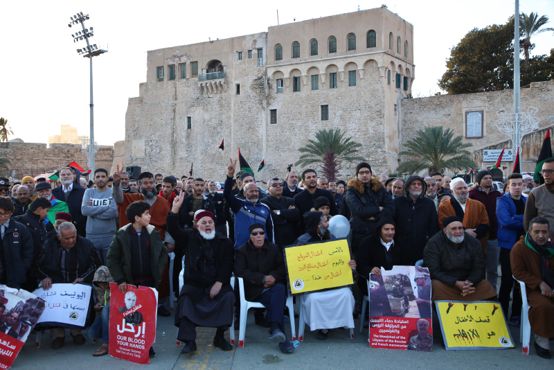 Meydanı dolduran kalabalık Hafter'i destekleyen ülkelere ise tepki gösterdi. Trabluslular söz konusu ülkelerin liderlerinin üzerinde çarpı işareti bulunan posterlerini yerlere serdi.