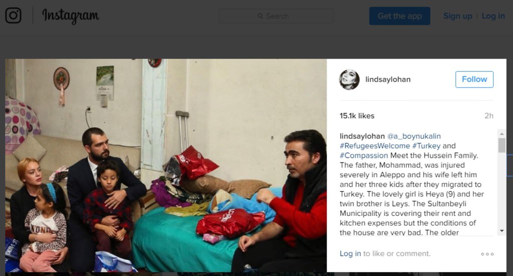 Ünlü Hollywood aktrisi Lindsay Lohan, Sultanbeyli'deki Suriyeli mülteci aileleri ziyaret edip onlara hediyeler verdi.